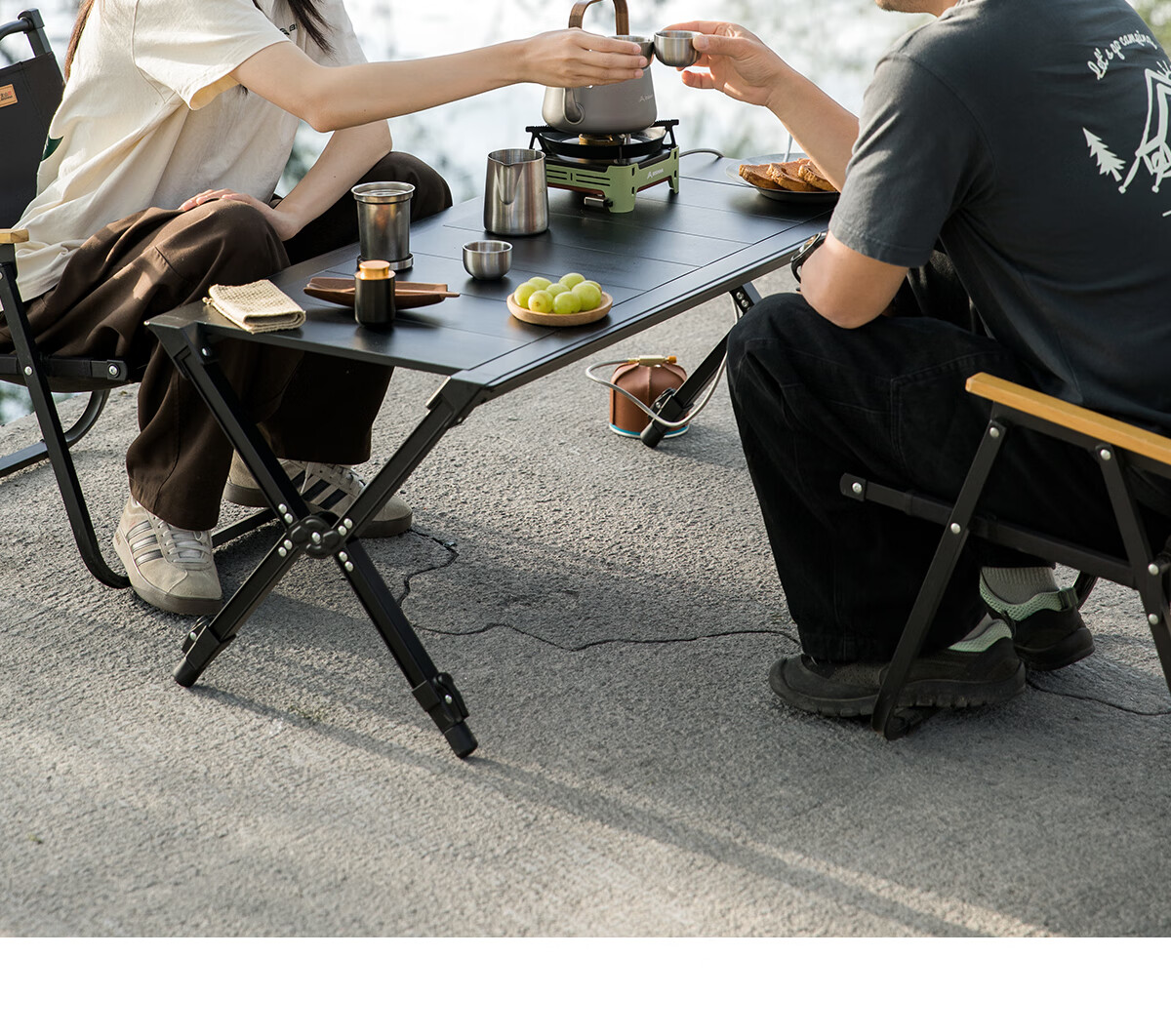 北山狼 户外折叠桌便携式轻量化蛋卷桌露营桌滑轨野餐桌子 90cm黑色+收纳袋