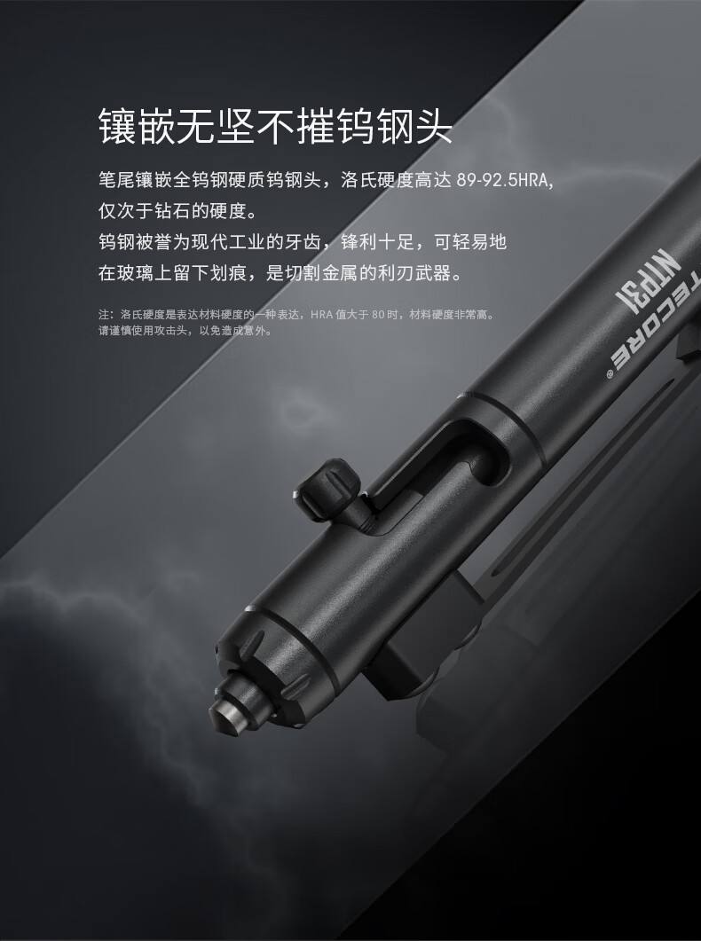 产品材质:铝合金手感很高,加工精密,零件配合度很高。 产品重量:重量很轻,,但笔身很扎实 适用场景:尾端钨钢头还没有尝试过敲玻璃,但是在其他金属上按压没有任何变钝