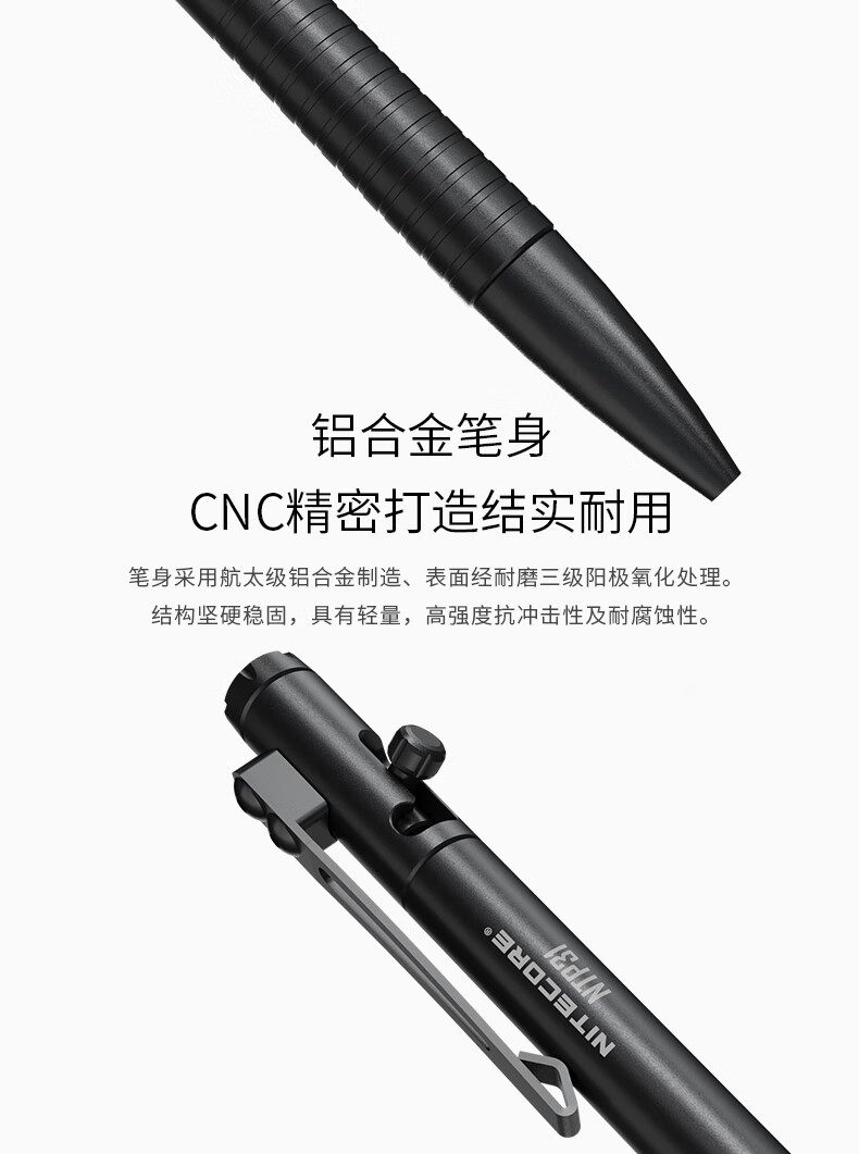 奈特科尔NTP31多功能战术笔户外应急防卫破窗铝合金安全笔 黑色