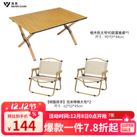 清系便携式露营桌子野餐可折叠克米特椅野营用品装备户外折叠桌蛋卷桌 桃木色大号90款+树脂扶手椅子*2