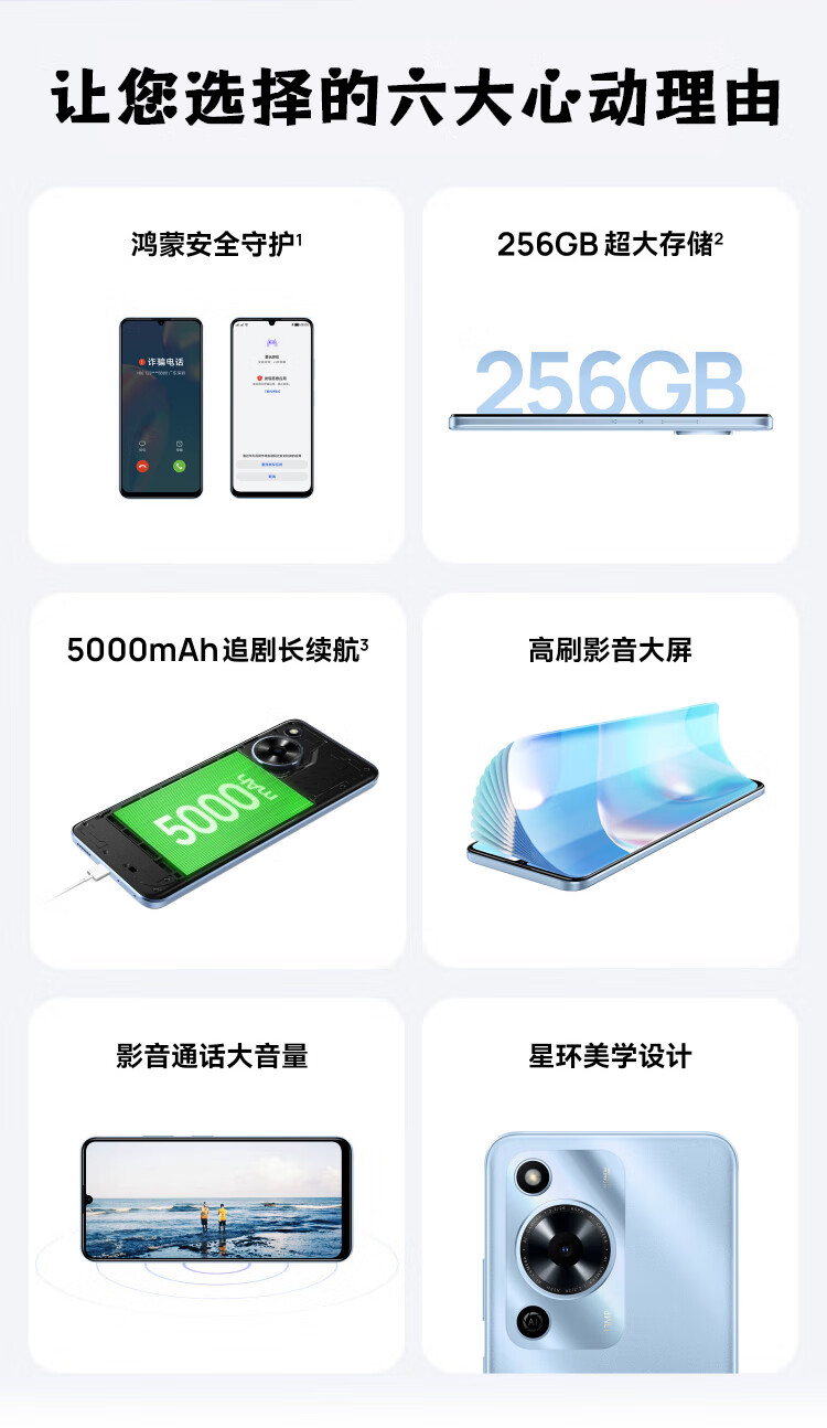 Hi nova 智选手机 60-70 Plus 新款 5G手机 高清大屏大内存 6000mAh长续航 2025新品上市 墨岩黑 6+128GB-60
