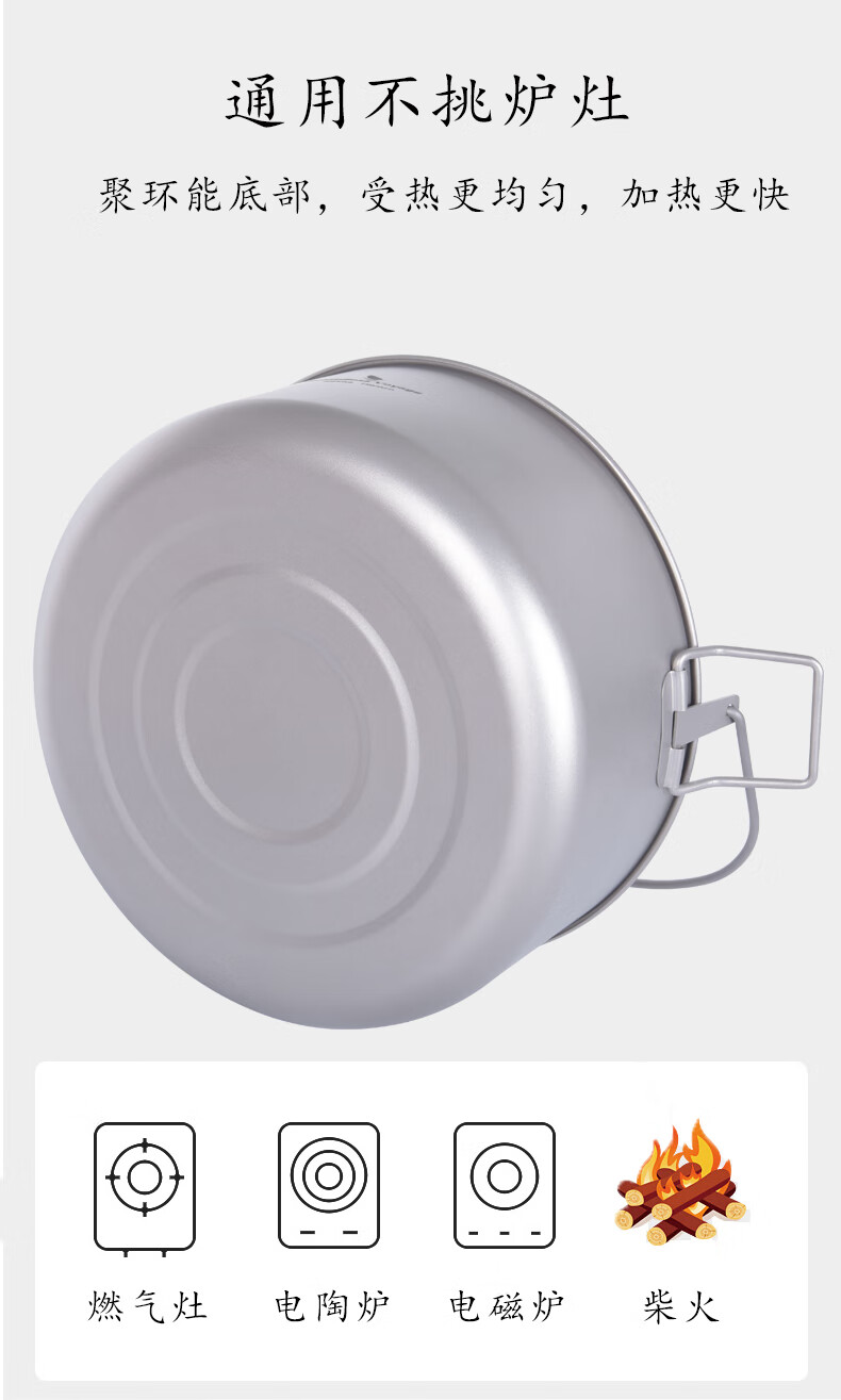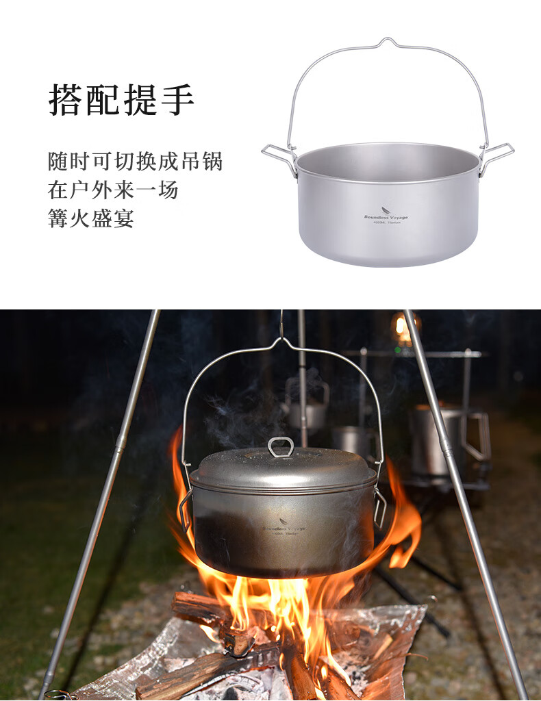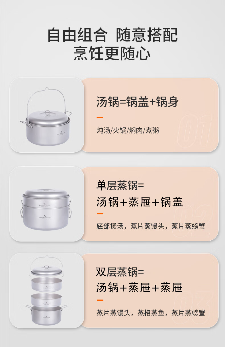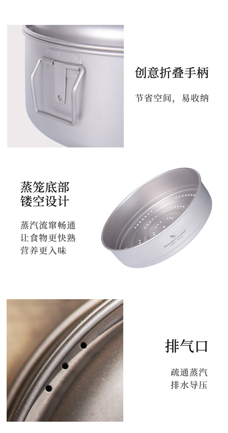 必唯(BOUNDLESS VOYAGE)必唯纯钛户外蒸锅2.2L汤锅轻量便携露营火锅野炊钛锅野营锅具炊具 Ti2111C 2.2L汤锅+2L蒸隔