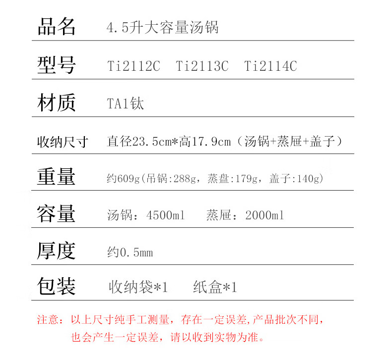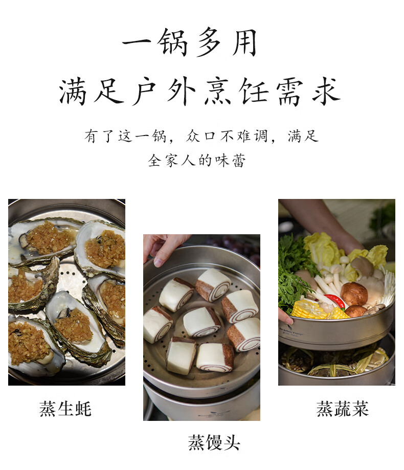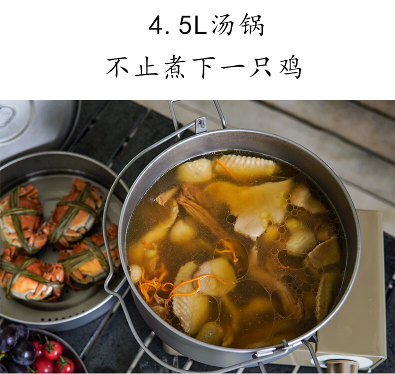 4.5升汤锅+2升蒸笼,多人户外腐败很合适,蒸笼可做多样化使用,比较实用,赞👍,值得购