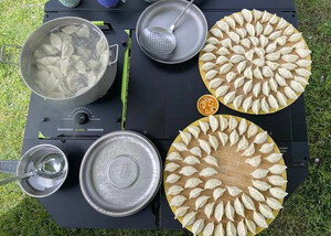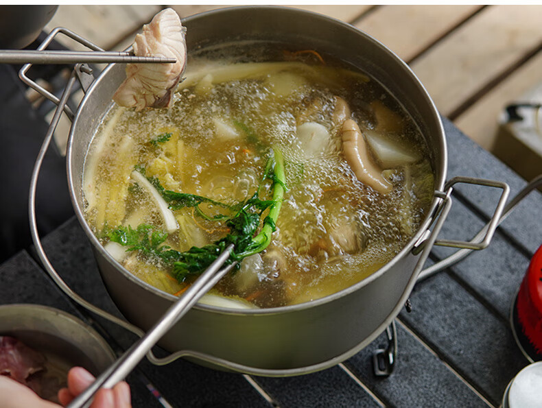 这套锅轻巧便携,但4.5L的容量真的足够大了,一家7口去露营第一次吃了顿饺子,导热性也不错,很赞👍🏻