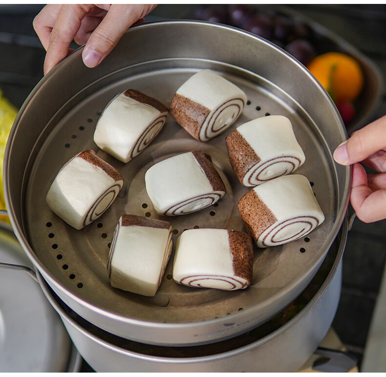必唯(BOUNDLESS VOYAGE) 必唯纯钛炒锅套锅汤锅吊锅户外烧水壶蒸锅便携露营用品不粘锅 1.9L蒸锅+0.7L烧水壶