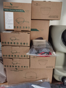 这是第二次购买他家的产品了,第一次买了把烧水壶,质量挺不错的,这次买的双层蒸锅、碗、筷、勺子、汤匙,加一起重量很轻,出去携带方便,主要是钛产品有益健康,总之就是非常喜欢!