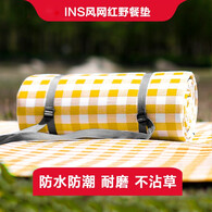 北牧歌野餐垫防潮垫加厚大户外露营垫便携防水郊游野餐布春游地垫可机洗 加厚黄白格【2x2米 腈纶布】