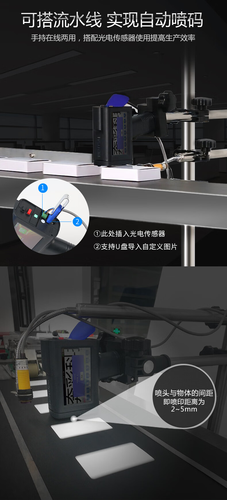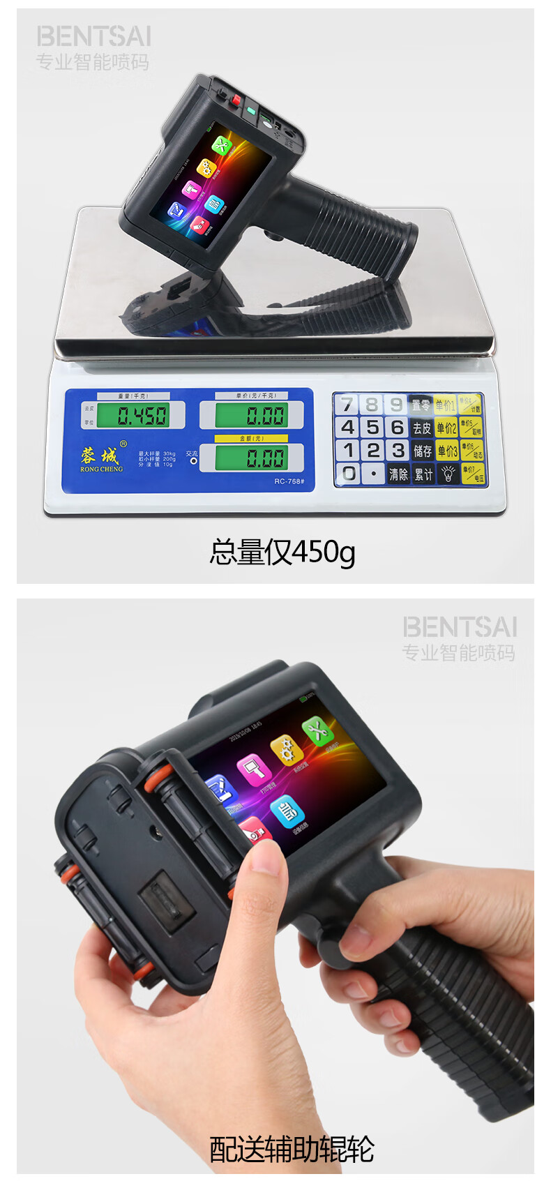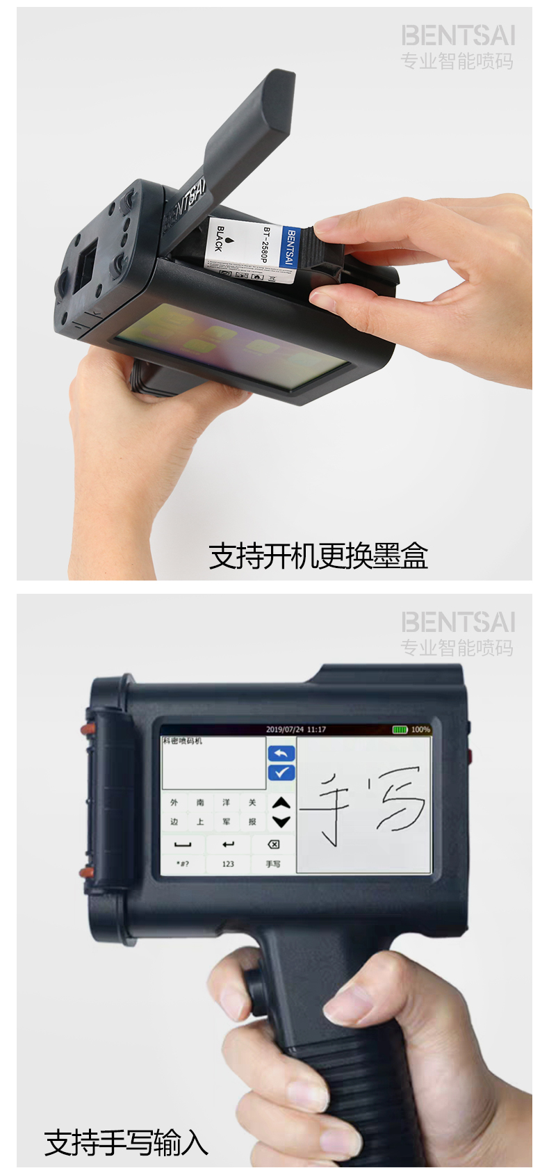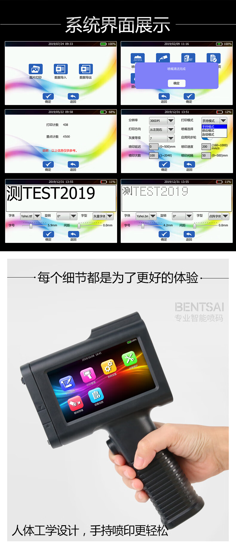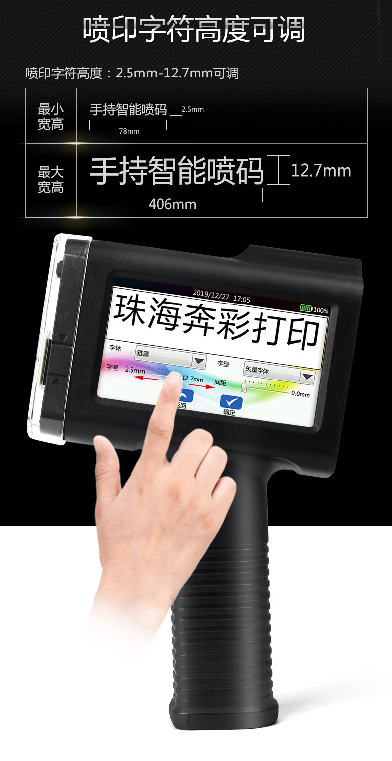 奔彩手持式喷码机打码器生产出厂日期纸箱包装全自动手动小型价格标签金属熟料陶瓷高清智能打印喷码器 喷印高1.27cm B2机器+红色速干墨盒+u盘