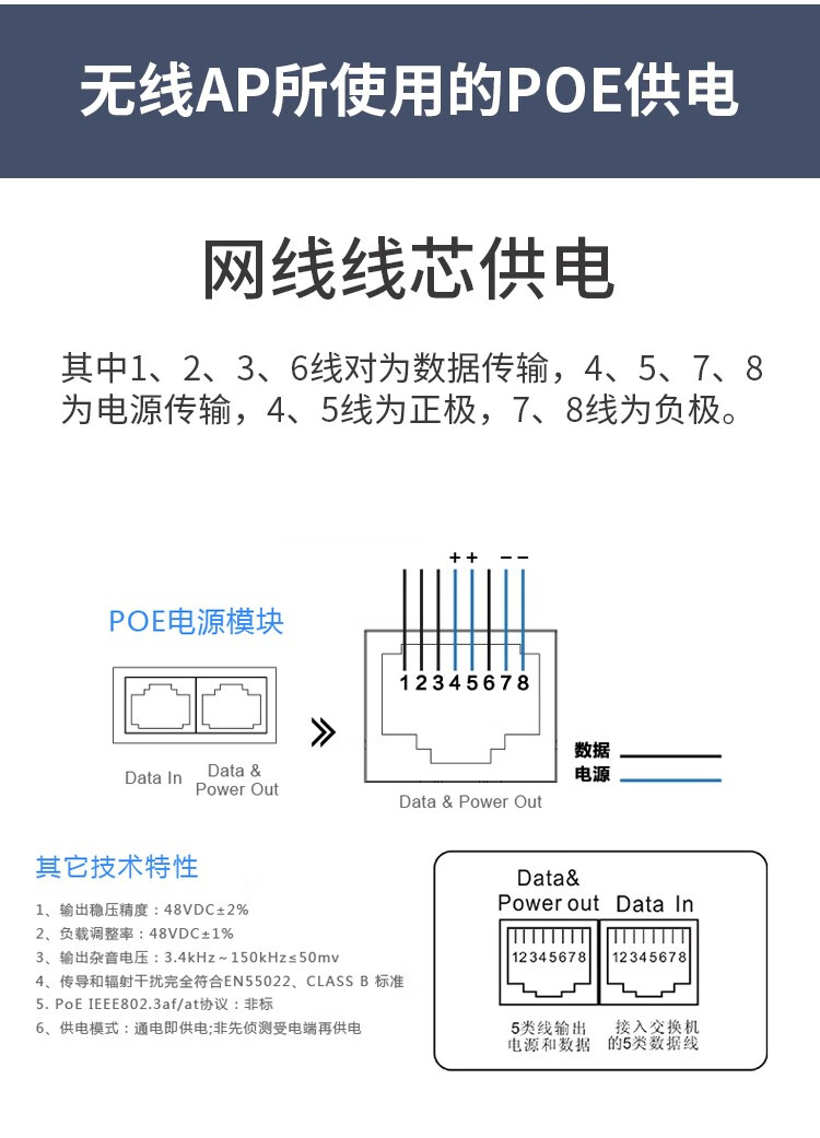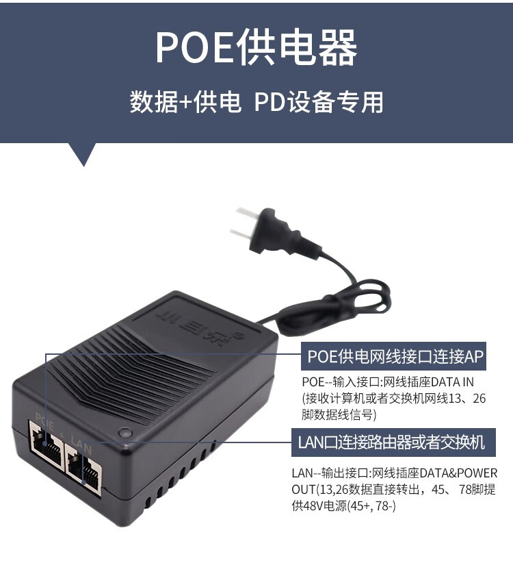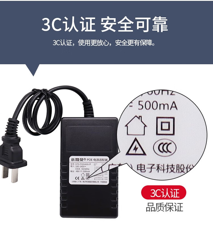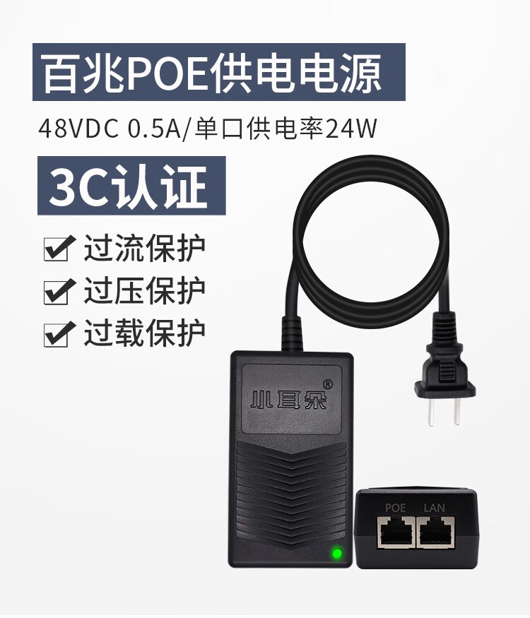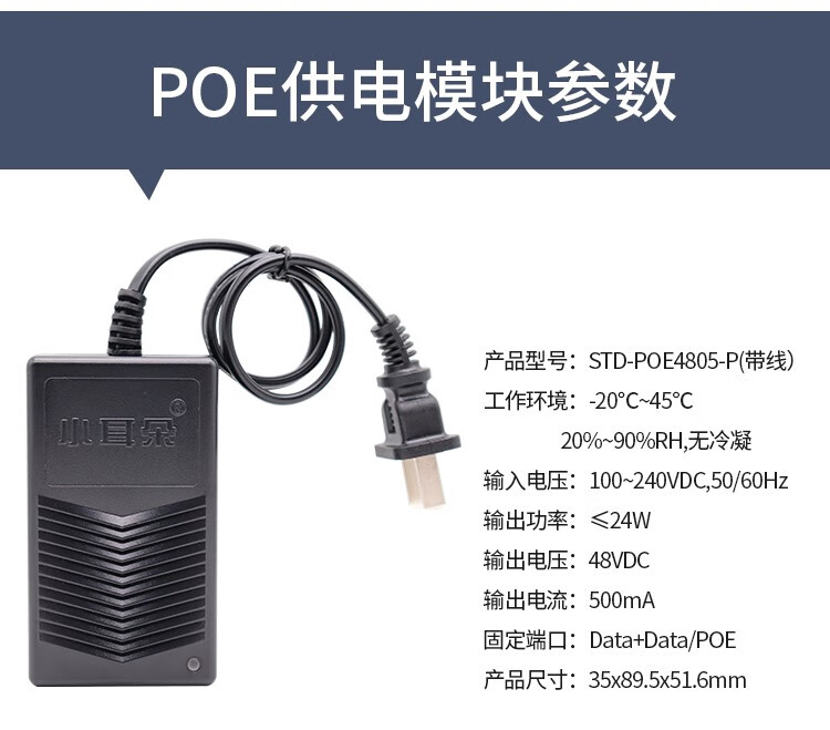 小耳朵原装千兆POE供电模块百兆48V0.5A分离器电源适配器STDPOE4805-P 千兆53.5V0.7A大功率供电模