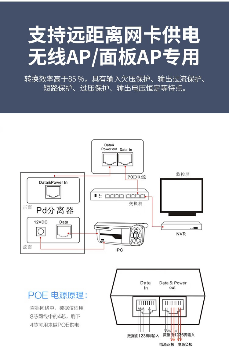 海康威视原装POE分离器标准48V转12V供电模块监控摄像头网络电源转换室外防水 颢德标准48V转12V