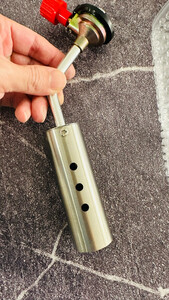 小试了一下,感觉力度挺足,口径大,烤大的东西比如猪蹄、羊头挺方便,就是点火时注意点不要烧到手,火焰温度很高