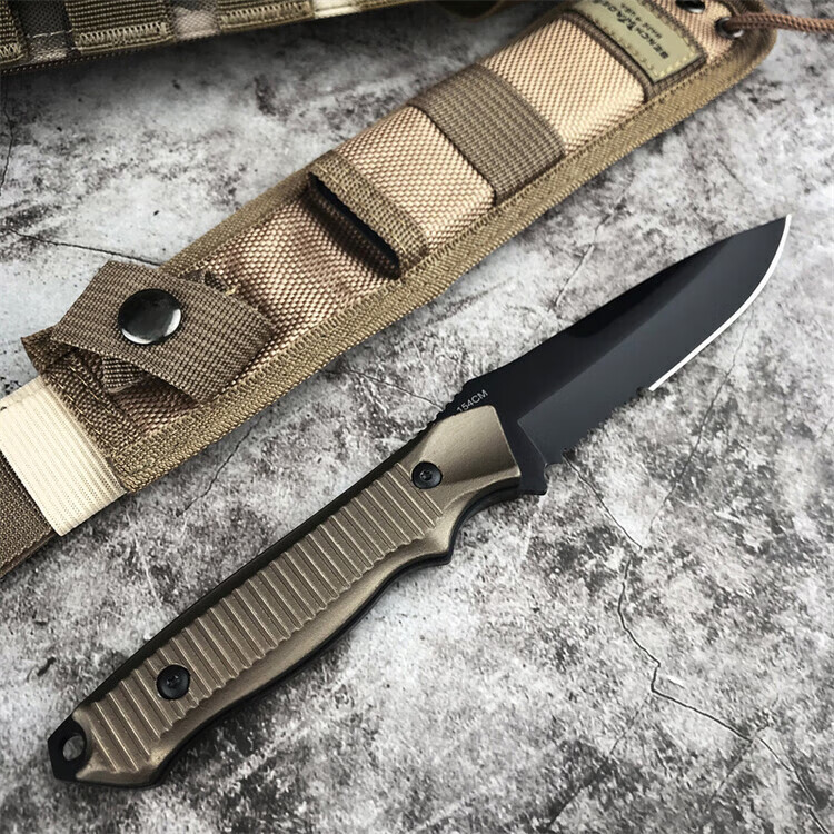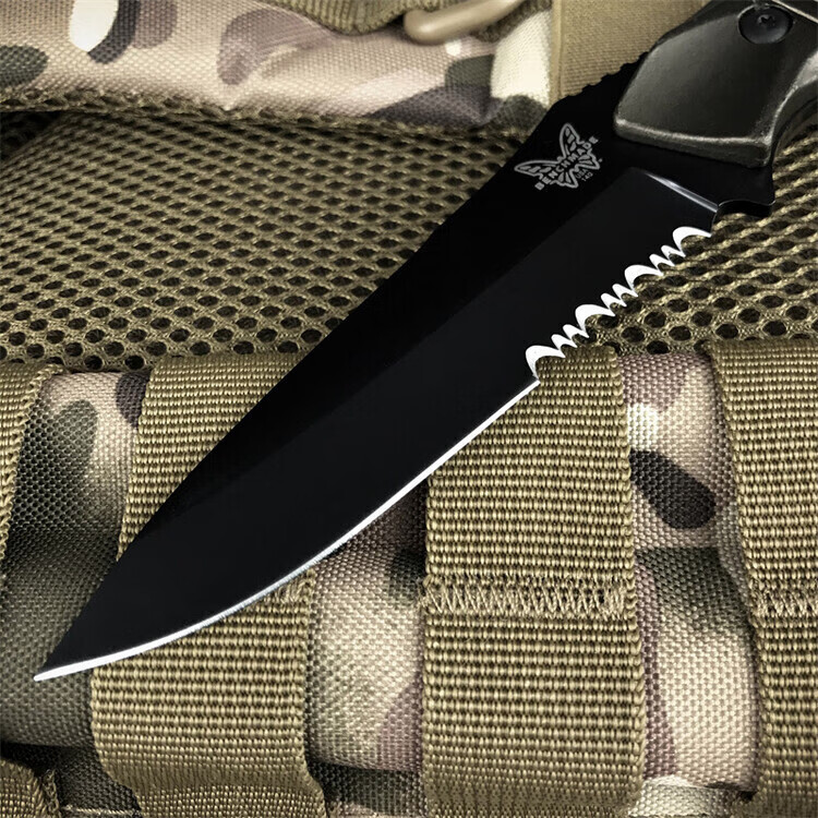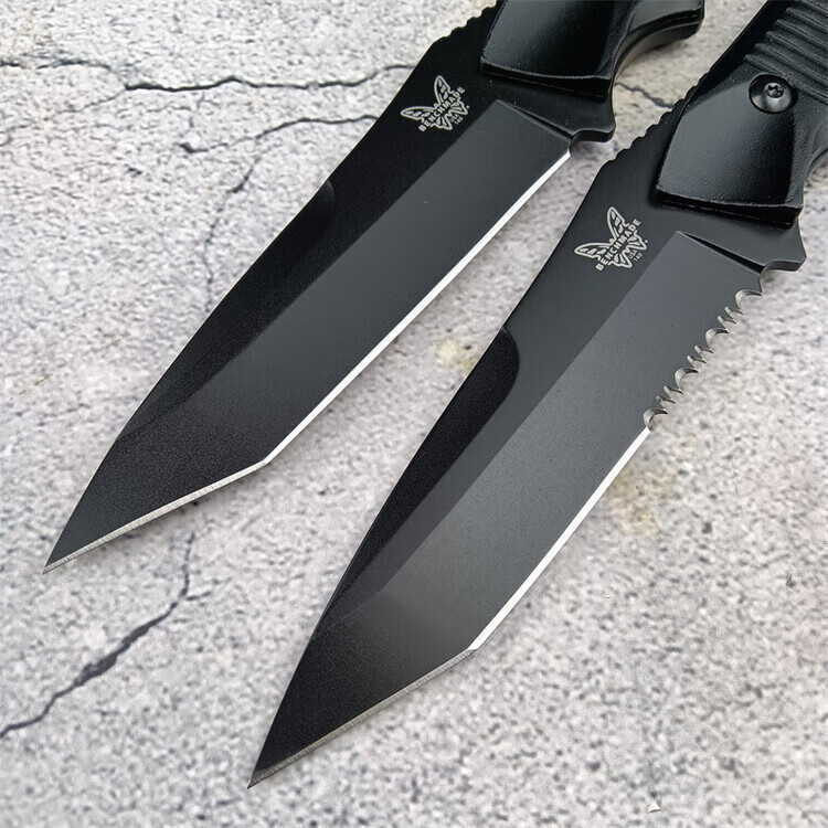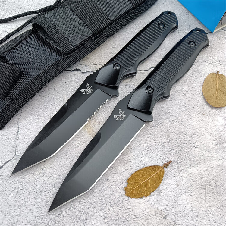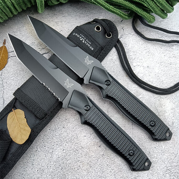 蝴蝶BM140BK猎虎多功能户外战术直刀高硬度D2钢刀野外便携锋利刀 蝴蝶沙漠色 圆头半齿