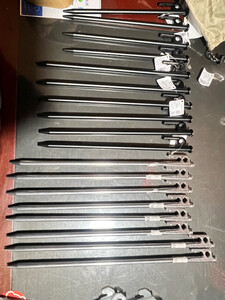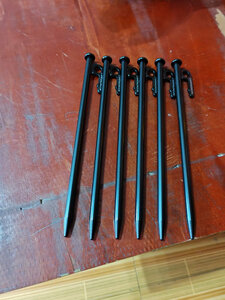 这款营钉硬度特别高,比天幕自带的好多了,又长又重,而且配合他家的营钉包,颜值高,使用方便。碳钢的不容易弯折,可以敲碎红砖,非常适合在板结地面砸。