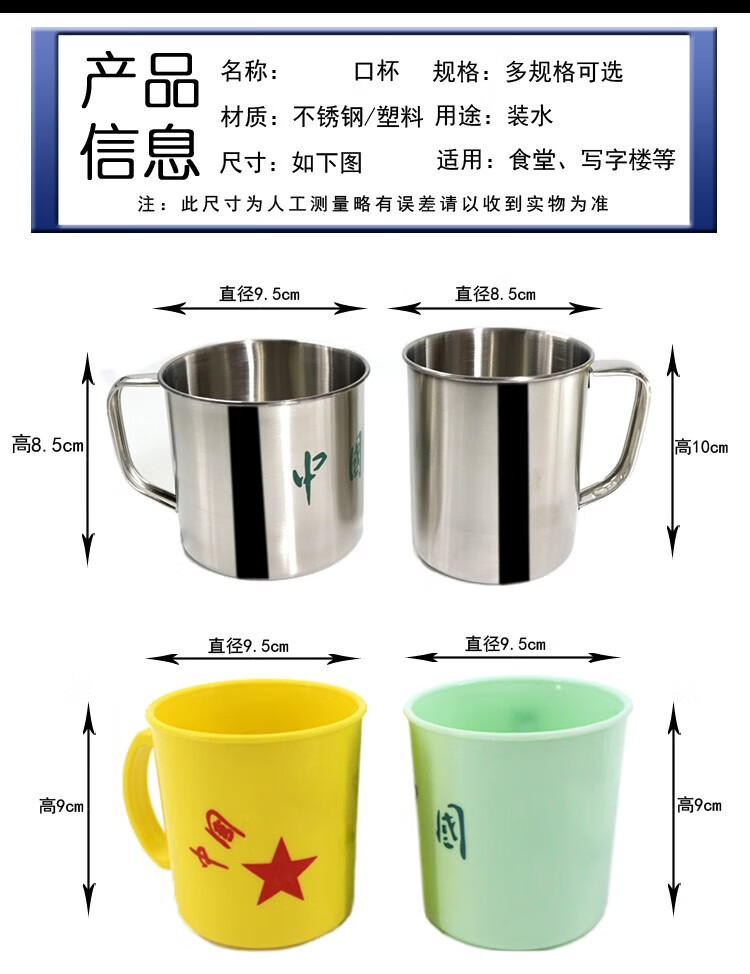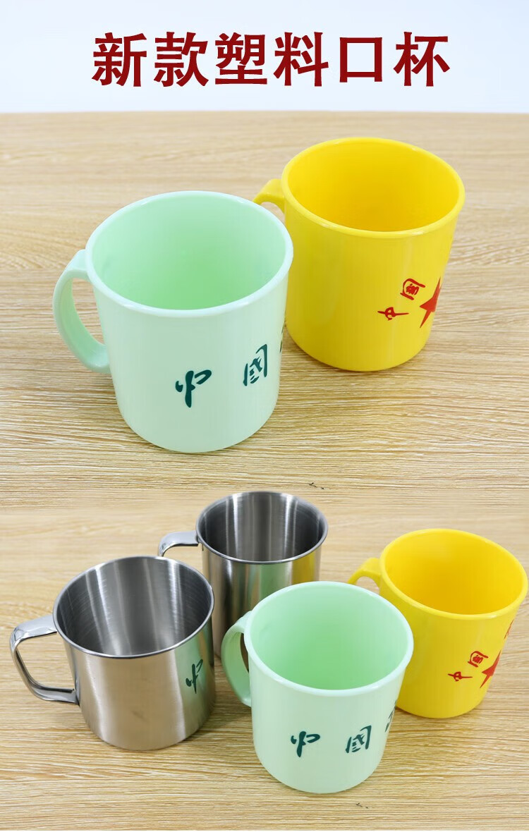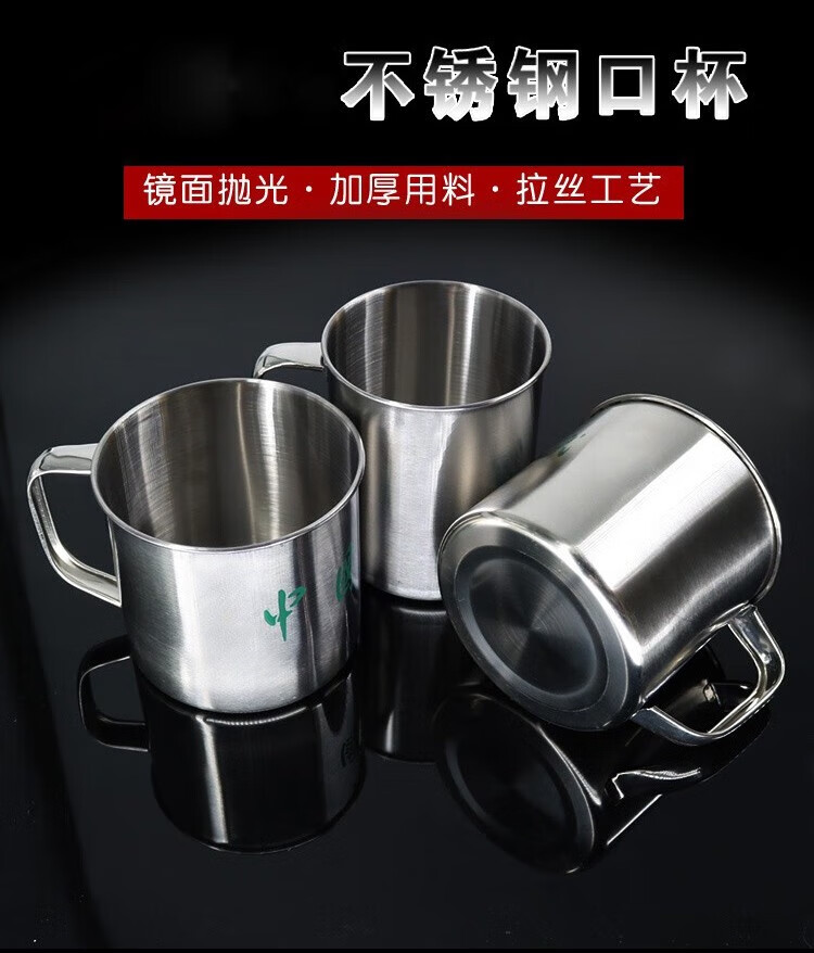 04不锈钢口杯 新式军迷不锈钢牙缸 茶杯水杯内务口杯军训洗漱杯 黄脸盘(不带字)