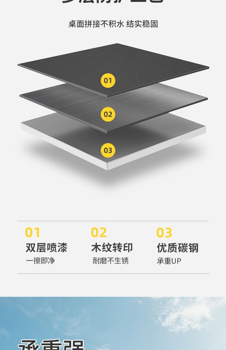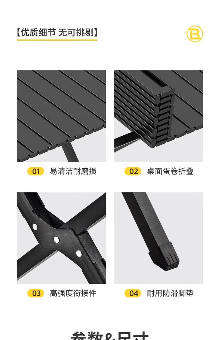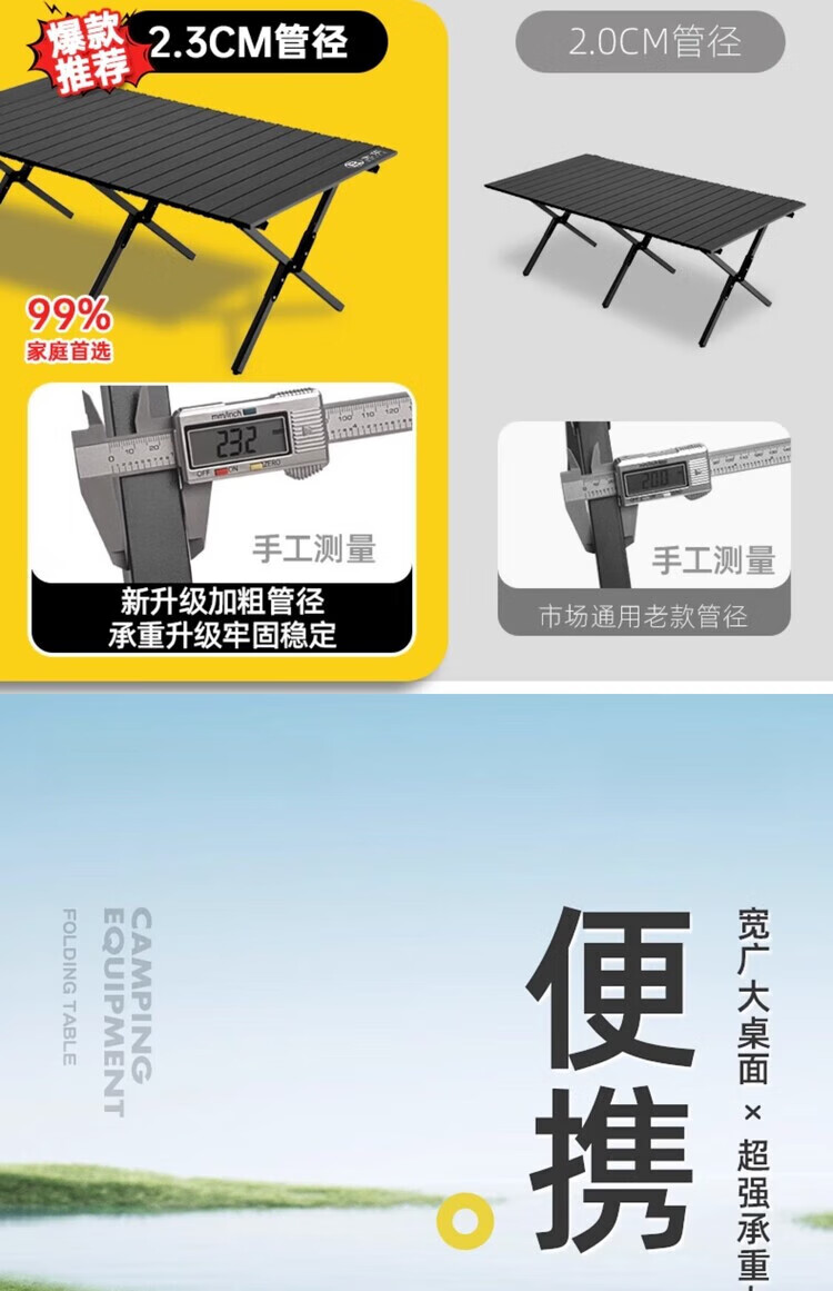 做工很精致,所有地方几乎没看到什么瑕疵。用料也不错很扎实配套的收纳袋携带很方便,承重没问题,一对大大小小东西方上面依旧很稳,桌面也很宽大,7-8个人用完全没有问题,承重好很稳,拍照也超级出片,超级推荐大家购买