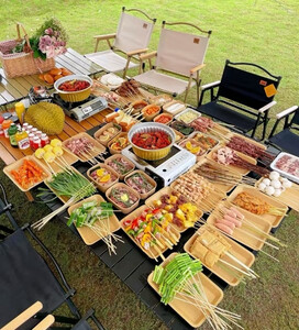 桌子很简单就架设好,整体恰好放到车后备箱里,做工特别细致,还很厚度,能存在很重的东西好漂亮实用太方便啦☺能轻松简单的就展开野餐桌颜色也很不错
