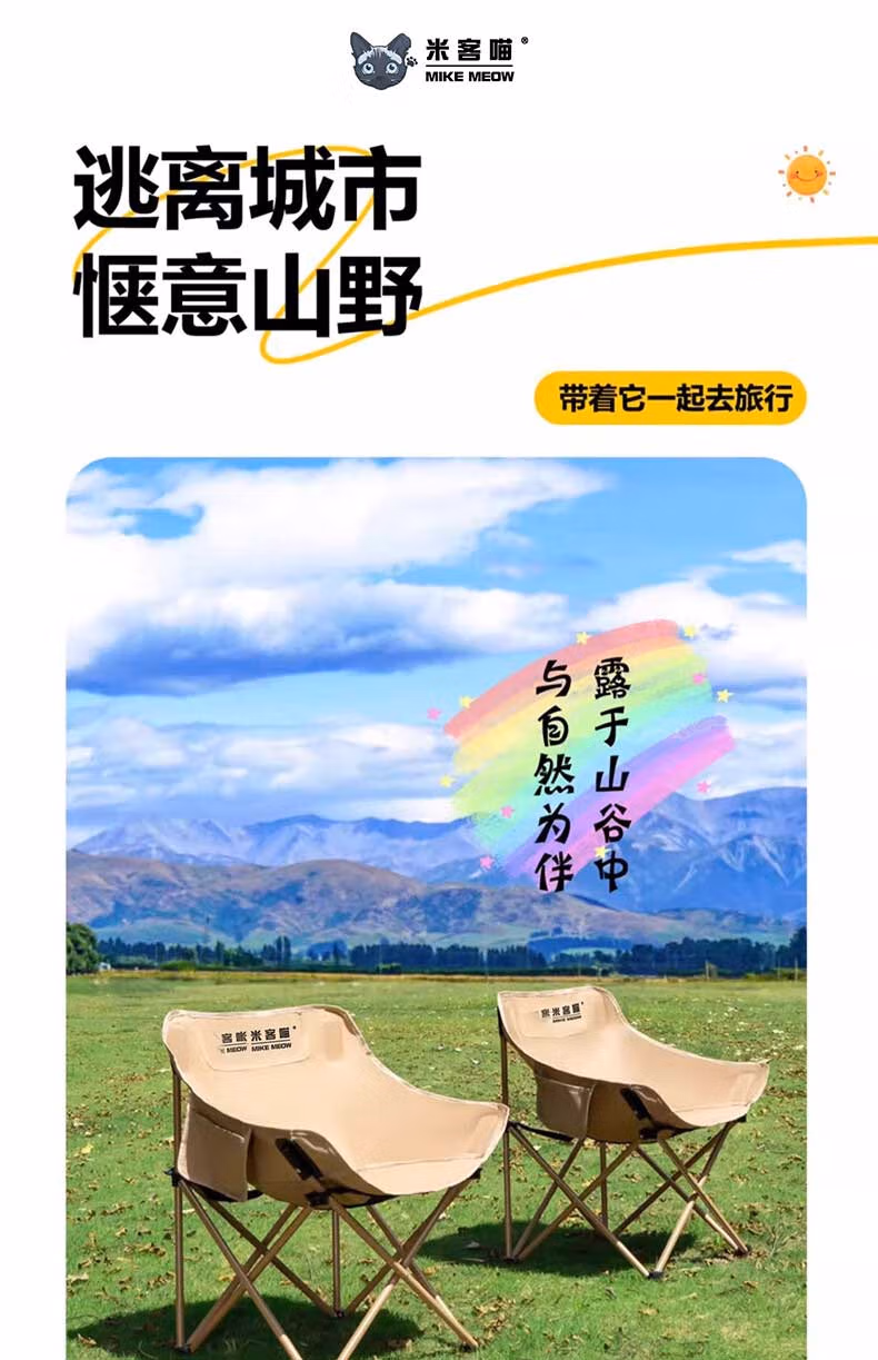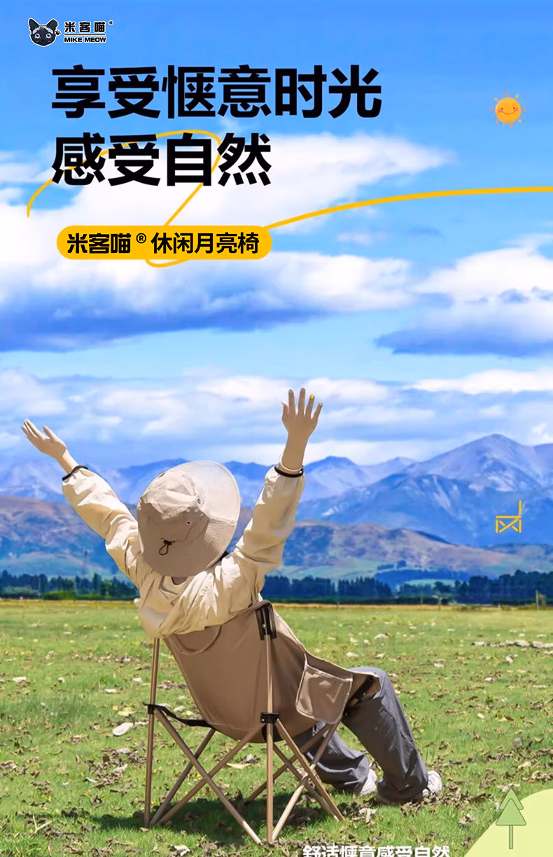 米客喵户外折叠月亮椅 露营椅子躺椅便携速开小凳子折叠凳钓鱼凳靠背椅 【店长力荐】舒适月亮椅+收纳袋
