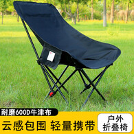 游山然户外露营高背月亮椅便携折叠椅子钓鱼摆摊凳子 蓝色大号(送收纳袋)
