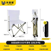 米客喵户外折叠椅靠背椅 马扎便携式板凳钓鱼椅美术生休闲摆摊露营桌椅 白色【中号】-配收纳袋