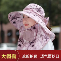 李绅遮阳帽女夏季采茶防晒帽2024骑车遮脸面罩干活太阳帽 主图款-香芋色【雪纺棉面罩可拆