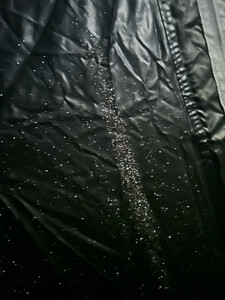 发货很快,但是不知道这种情况属于正常还是有问题,搭起来以后无灯光情况下,这黑胶层有好多地方都是这样星星点点的透着光,下小雨也渗水。感觉有点不太行的样子。已经使用了,不好退,没办法了。