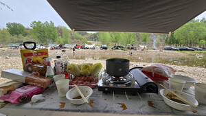 第一次搭天幕,自己动手完成,蛮有成就感,也找到了搭建技巧,带的绳索很结实,地钉也不错,自带个锤子,敲敲打打,完成搭建。哈哈,真不错。帐篷和天幕,搭配在一起,气氛和感觉,一下就上来了。京东物流真快,第二天到货,不影响五一旅游出行。