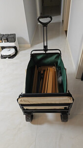 车车很适用,可以展开后面,放长一点的东西,看起质量不错,收折非常方便,拿快递、搬物、露营等非常适用,还可以当桌子,一物多用,很完美!同时建议装蛋卷桌的盒子再做大点就好了,拆了还原很费力。
