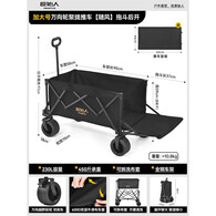 原始人露营推车户外营地拖车旅行可折叠手推野餐野营手拉车小拉车 230L 有刹车 曜石黑【后开越野款】