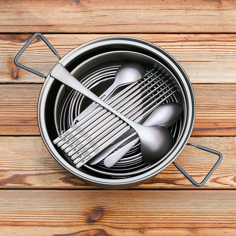 铠斯(KEITH) keith铠斯纯钛汤锅套锅钛餐具便携多功能户外餐具碗筷勺旅行套装