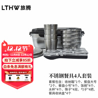 旅腾户外餐具便携套装露营用品装备野餐碗盘杯筷勺304不锈钢 餐具四人套装