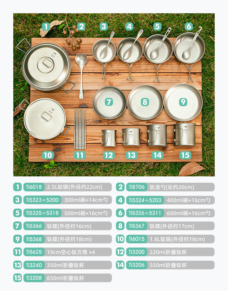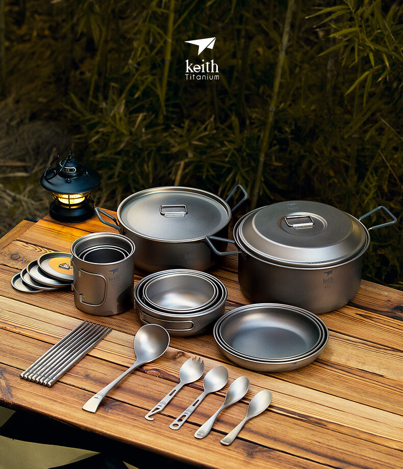 KEITH 铠斯【家庭露营】 钛餐具户外纯钛碗野餐筷勺餐饮便携装备 家庭露营-纯钛餐厨具(含水杯)