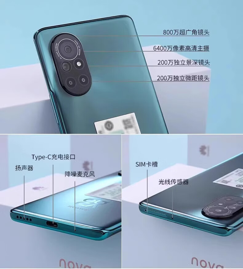 HUAWEI华为 nova 8 Pro 5G 全网通麒麟985芯片nova8手机 亮黑色 中国大陆版 nova8 (曲面屏)8+128G