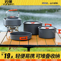 云伴户外锅具野餐露营装备用品烧水壶煎锅装备锅具用品野外便携煎锅 小号煎锅+【配套网袋】