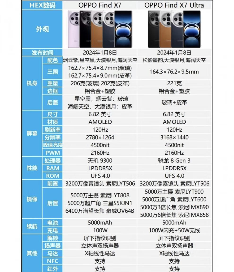 AI大模型,卫星通话,轻薄,LTPO屏幕,高频PWM调光,全焦段影像,潜望式长焦,无线充电,NFC,红外遥控,大底主摄