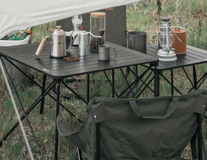 牧高笛户外露营野餐便携碳钢折叠蛋卷桌野餐野营装备山享方形蛋卷桌 曜石黑L 适用2-6人