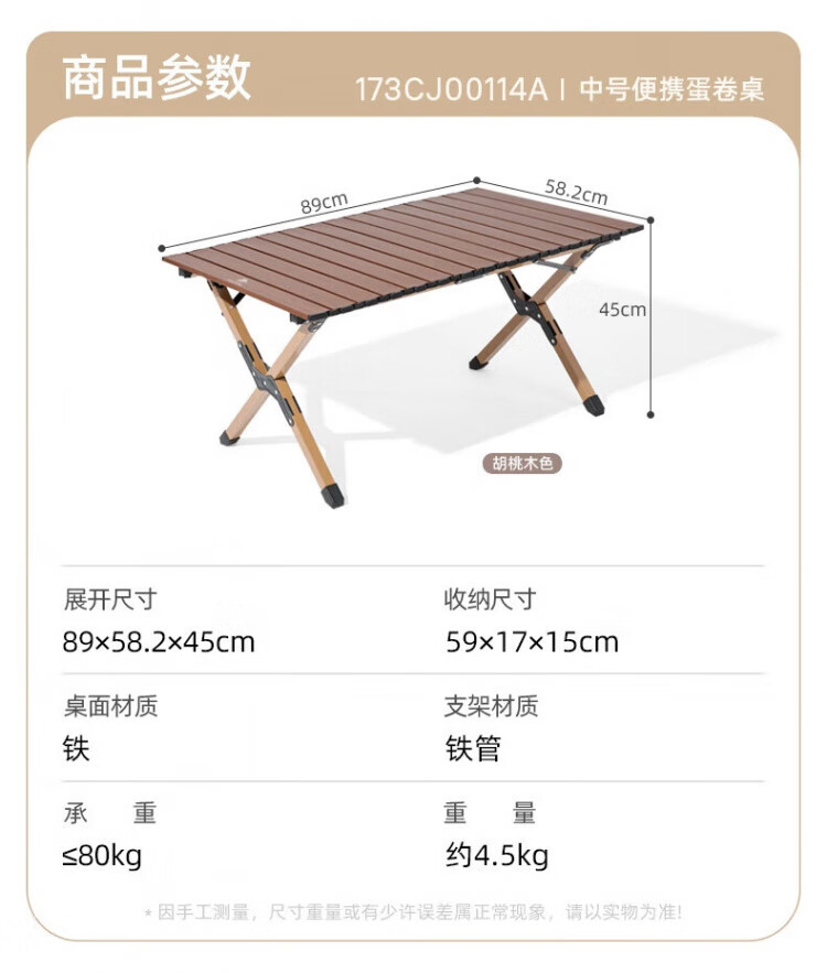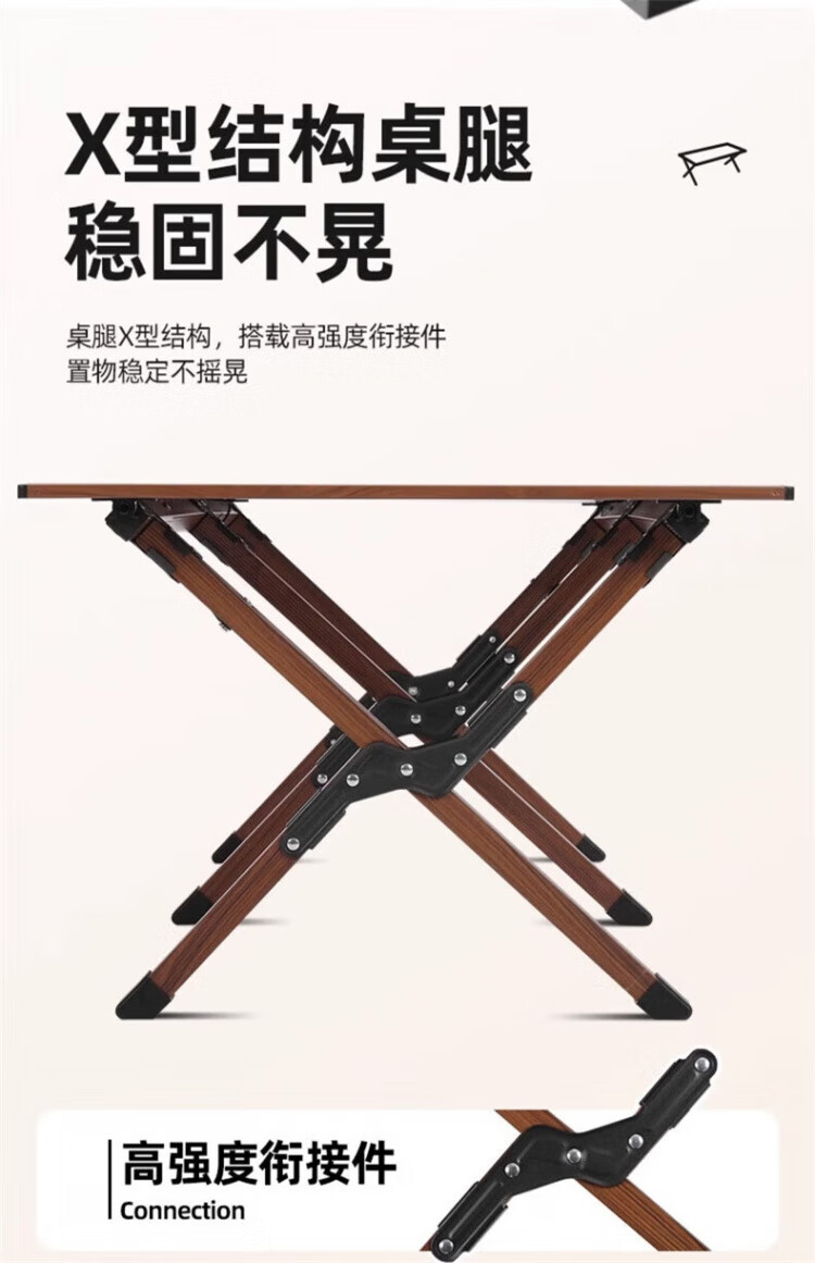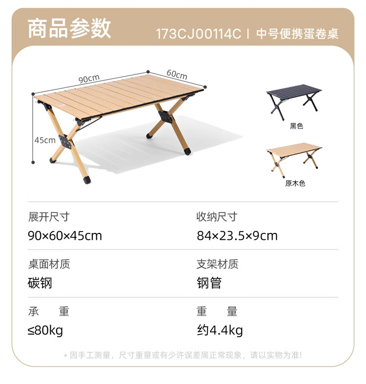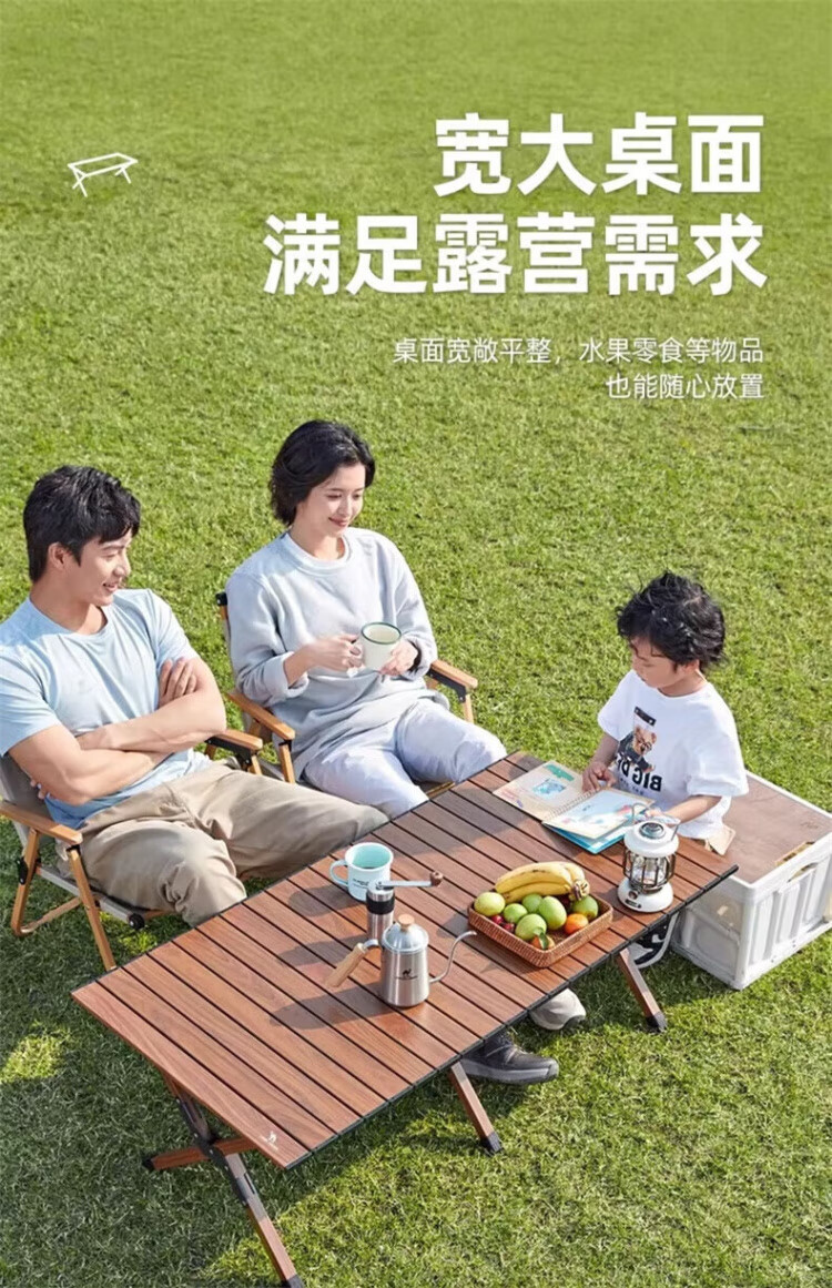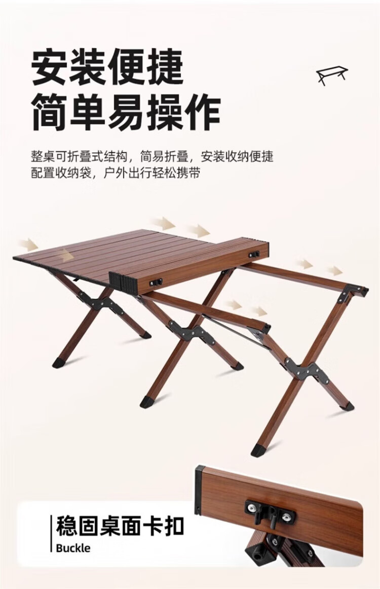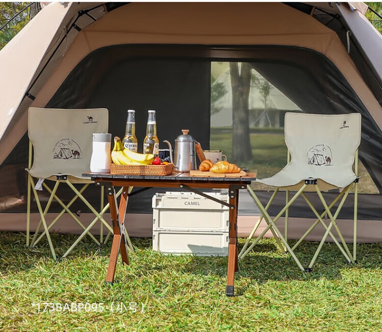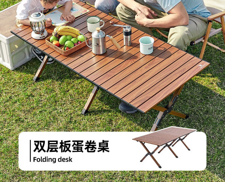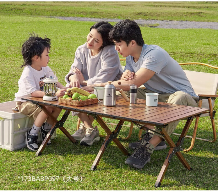 骆驼户外蛋卷桌露营桌椅野营装备用品桌子野营野餐折叠桌便携式 中号-原木色-173CJ00114C