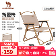 CAMELCROWN户外露营轻便携折叠椅阳台休闲钓鱼椅子野营装备野餐克米特 卡其(铝合金经典版) A1W3GT101-2