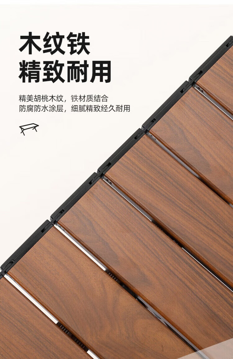 Guide Series 户外便携铁艺折叠野餐露营烧烤置物架野外野营IGT折叠桌 网格桌(双层)+竹木板
