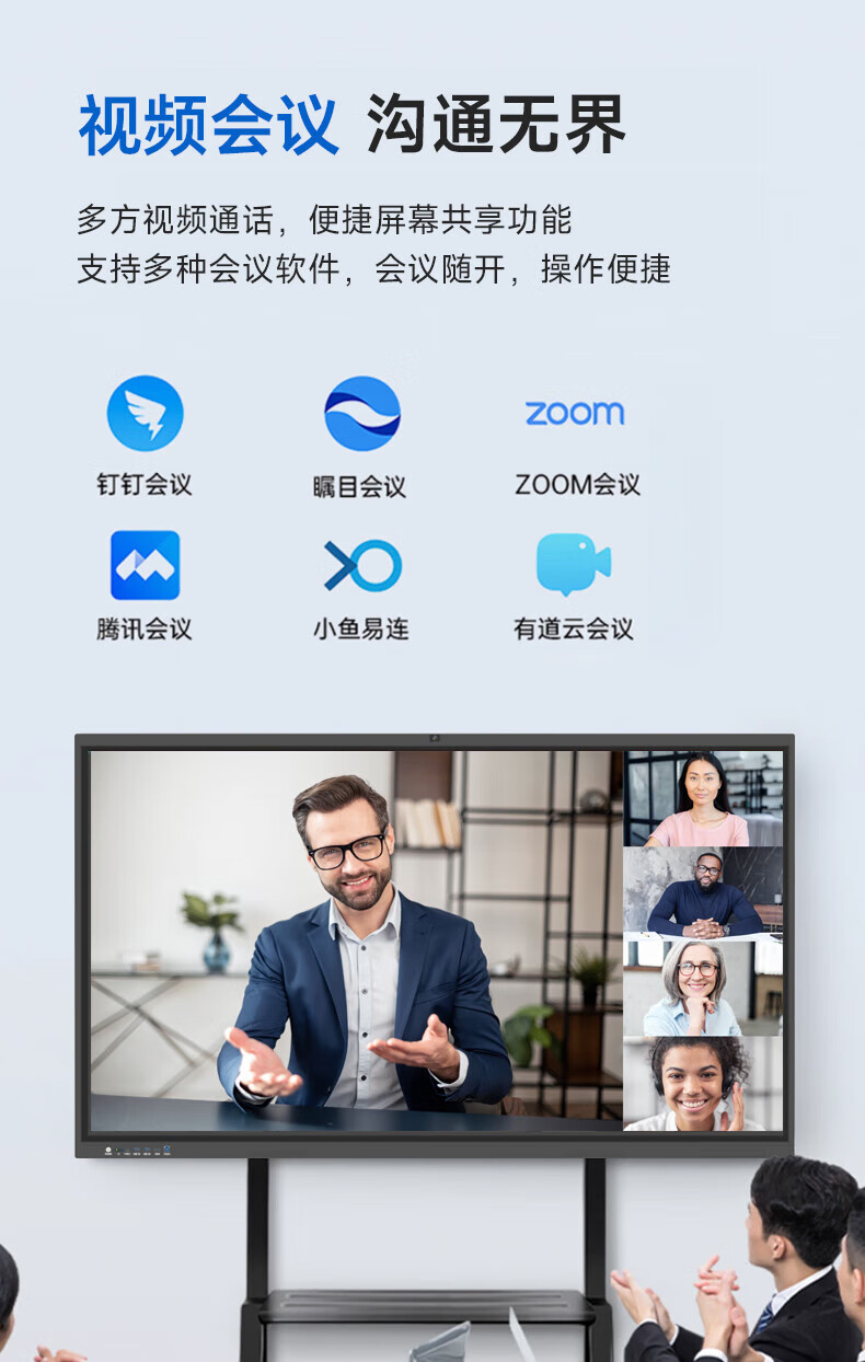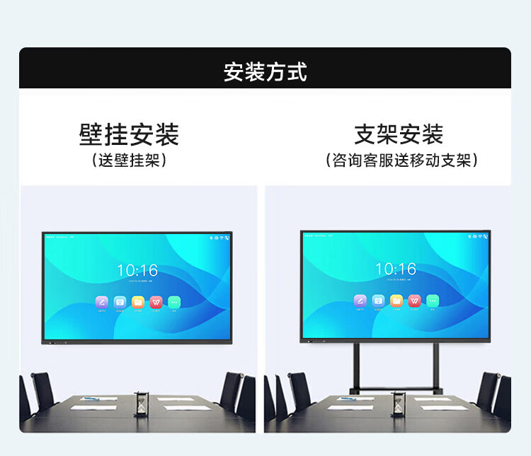 会议平板一体机65/85/100英寸液晶触摸电视无线投屏超清4K触屏教育一体机电子白板会议大屏幕 100LED 单系统+挂架