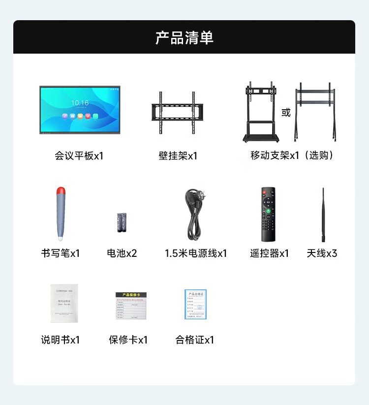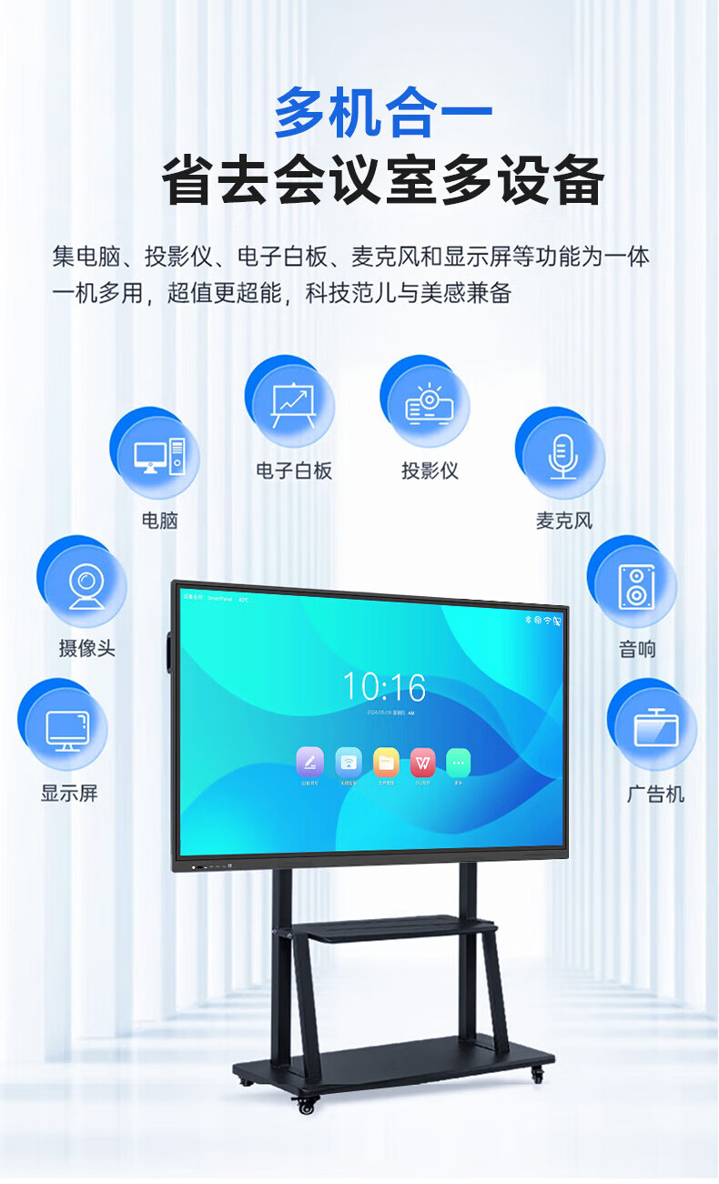 会议一体机教学家用多媒体触控屏电子白板智能投屏办公4K超清智慧屏教学触摸一体机55/65/75/85/100英寸 75LED触摸一体机+移动推车+运费险+包安装 单系统四代4K超清【i5/8+256G