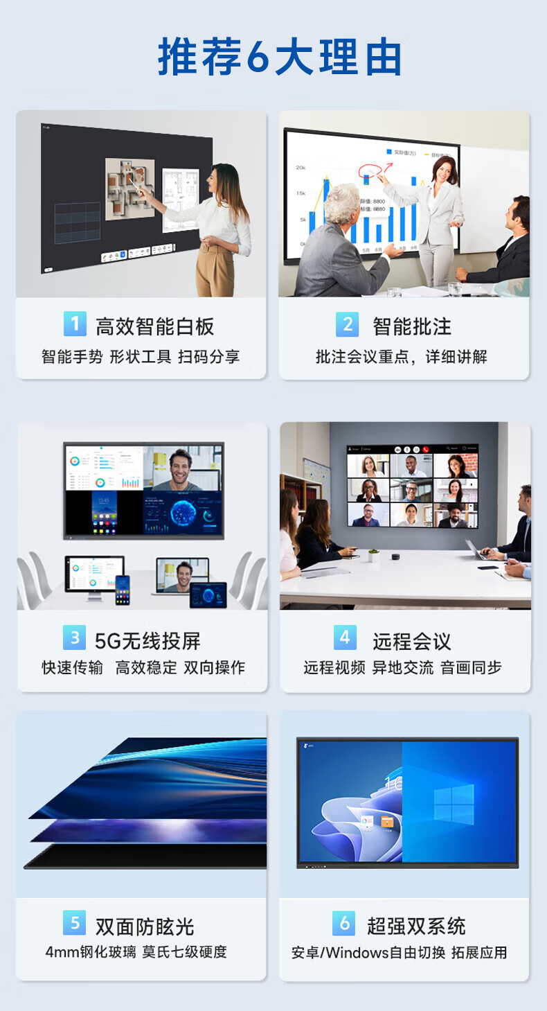教学一体机希沃白板软件会议平板触摸屏一体机4k超清教学一体机触摸屏投屏办公远程视频 100led 【触摸防爆屏+移动推车+送货上门】 单电脑 Win10(i5/8+256G)送教学资源