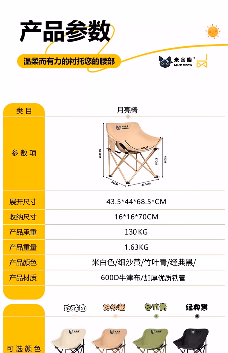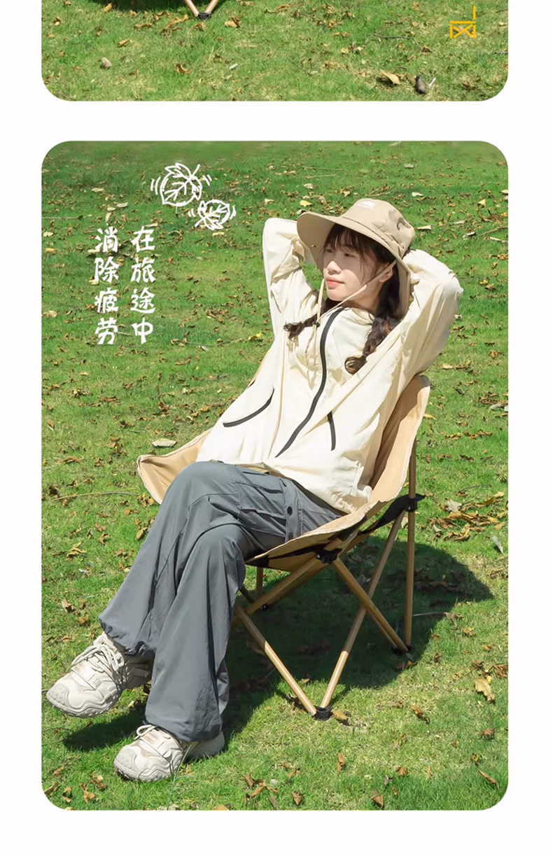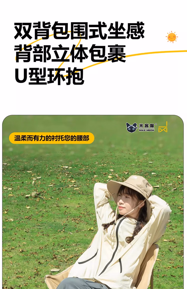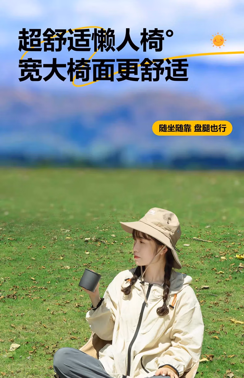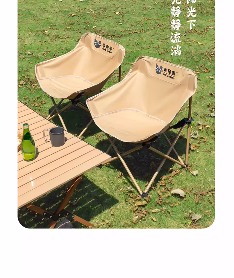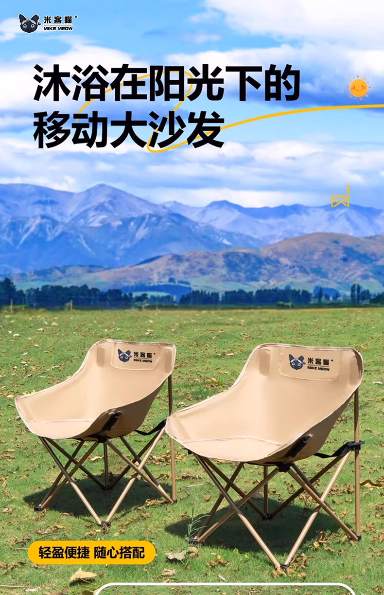 米客喵户外月亮椅 便携靠背钓鱼懒人椅 夏日溯溪避暑露营折叠椅子 高背月亮椅【深黑色】+收纳袋