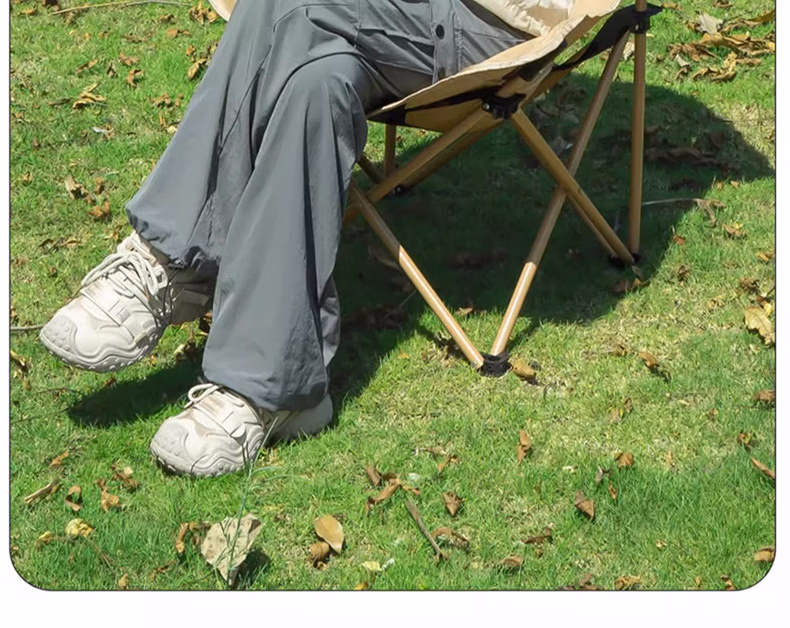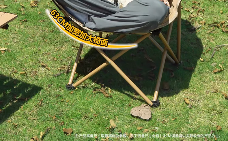 北岳户外折叠椅加高月亮椅露营椅子便携板凳钓鱼沙滩躺椅野餐桌椅装备 【加高舒适款】磨砂黑-加固+夹棉