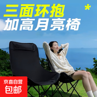 游山然户外露营高背月亮椅便携折叠椅子钓鱼摆摊凳子 高靠背黑色月亮椅(送收纳袋)