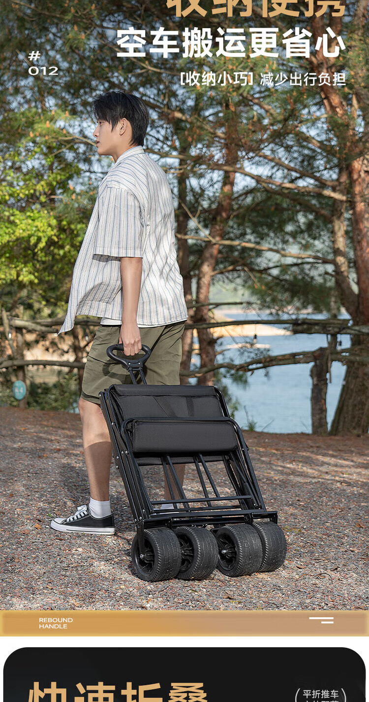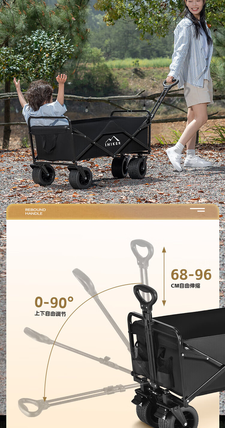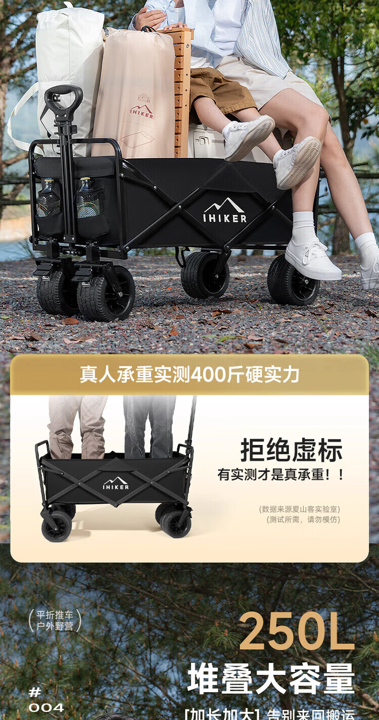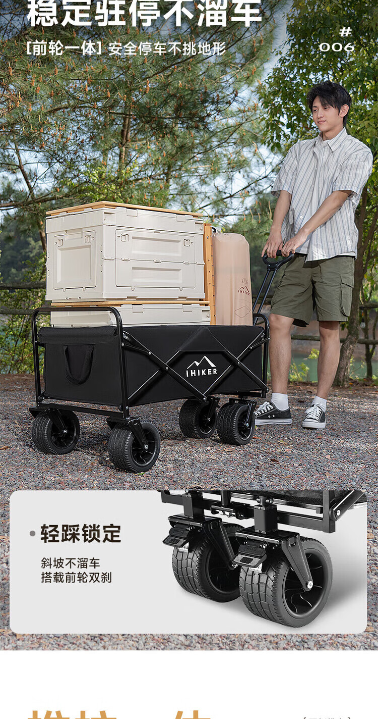 爱山客露营车户外可折叠推车超大营地车野餐车拖车野营手拉杆摆摊小推车 暗夜黑 200L 无刹车 【万向静音轮】
