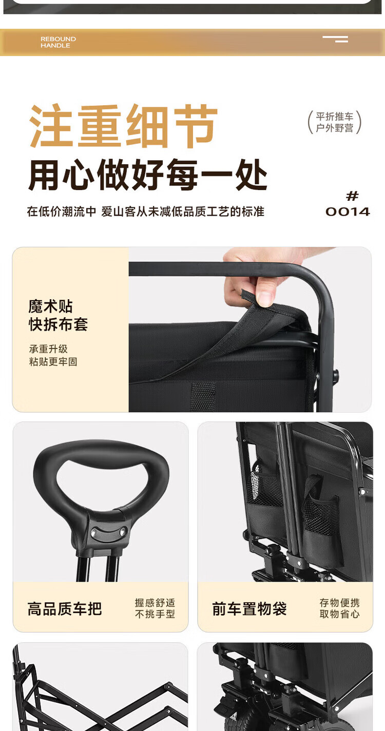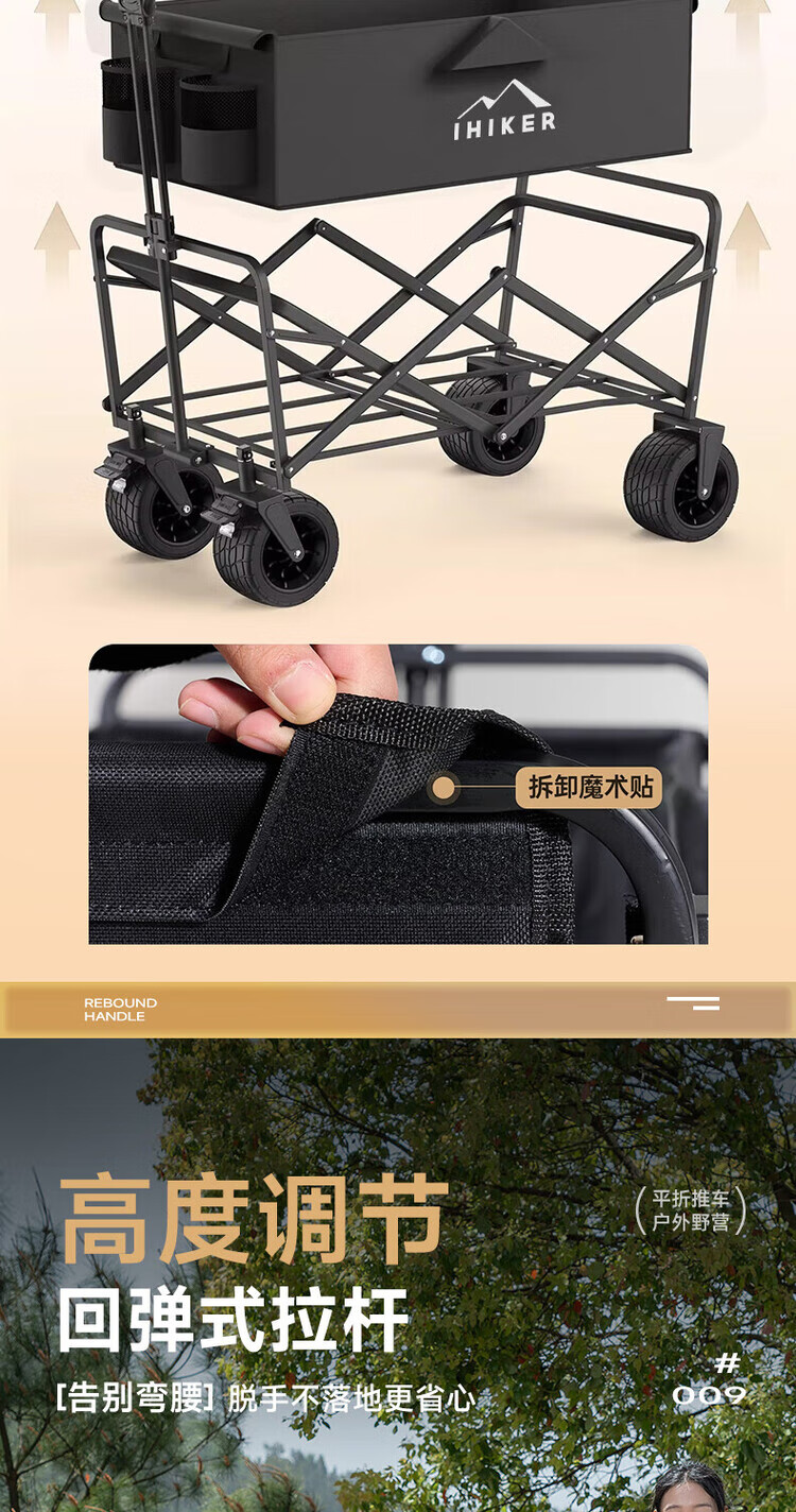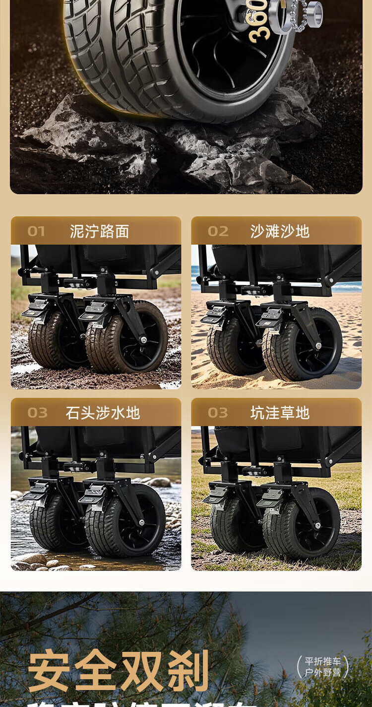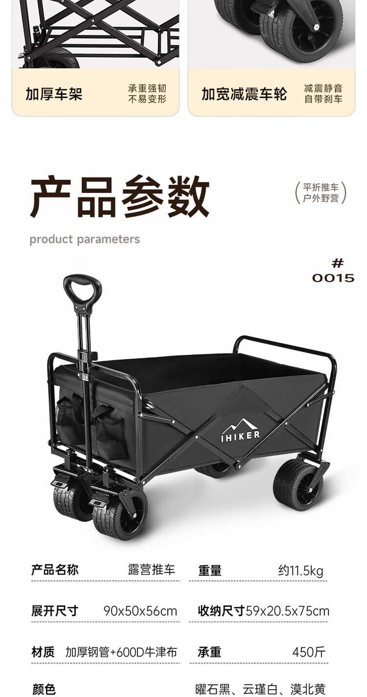 爱山客露营车户外可折叠推车超大营地车野餐车拖车野营手拉杆摆摊小推车 暗夜黑 200L 无刹车 【万向静音轮】