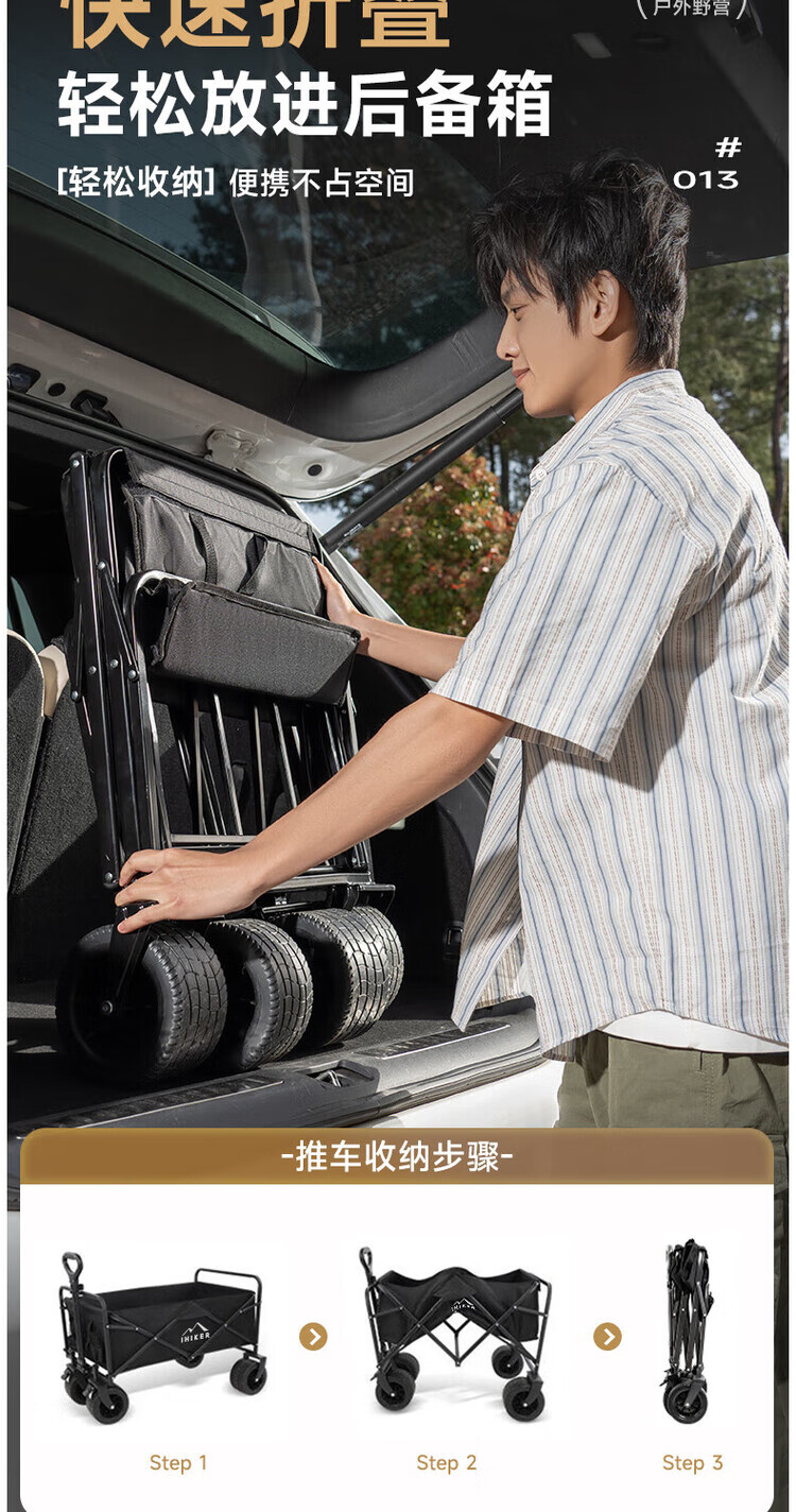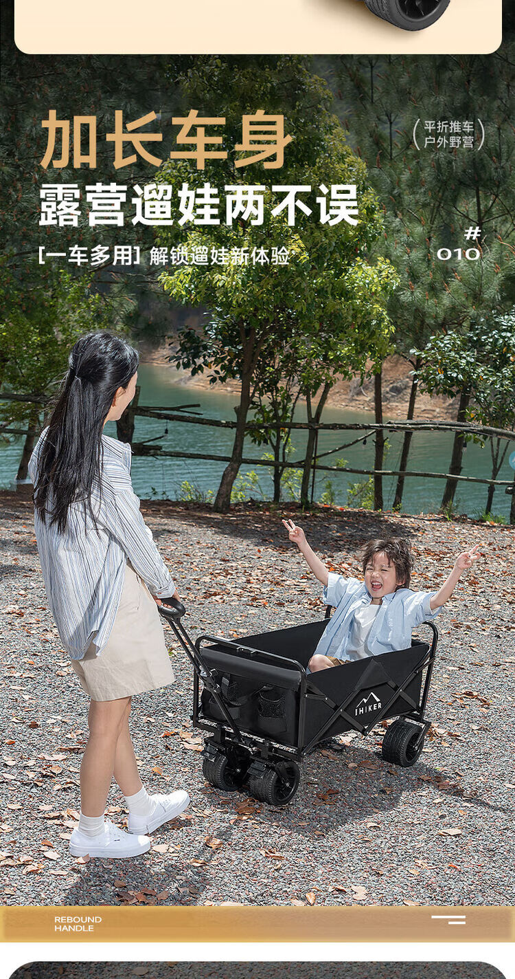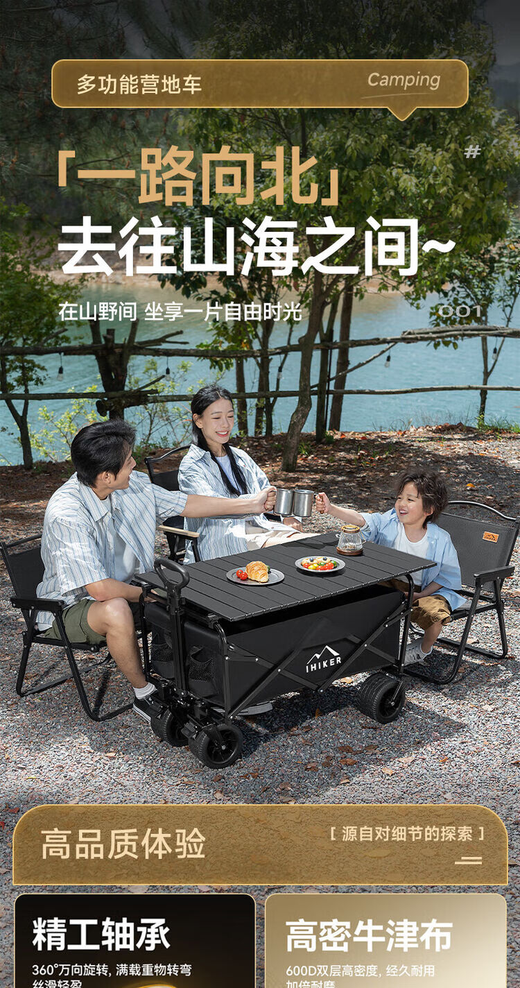 探险者(TAN XIAN ZHE)露营车儿童可躺户外露营推车营地车野营车可折叠桌板野餐车买菜车 曜石黑【静音万向轮+全钢车架】