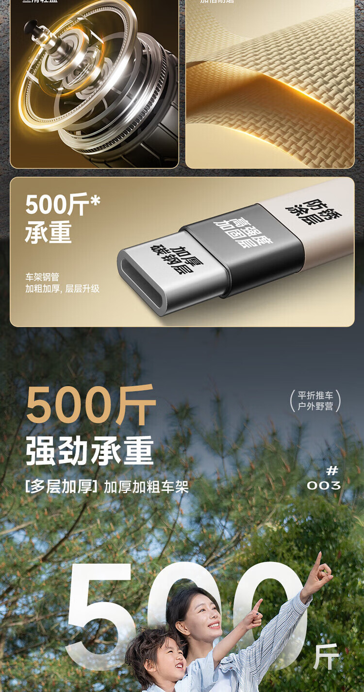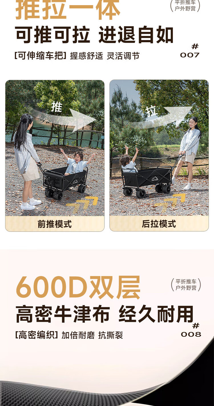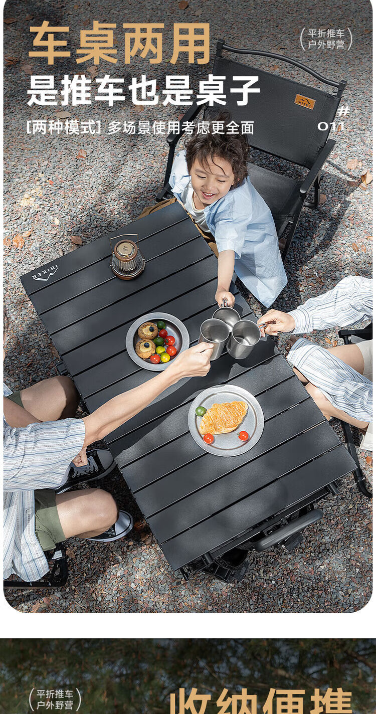 探险者(TAN XIAN ZHE)露营车儿童可躺户外露营推车营地车野营车可折叠桌板野餐车买菜车 曜石黑【静音万向轮+全钢车架】