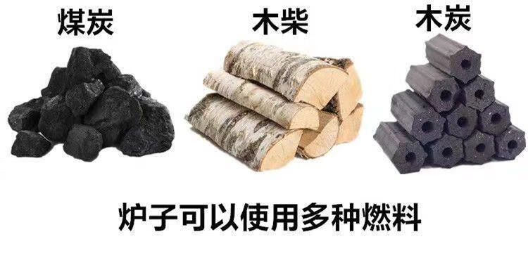 室内气化无烟取暖炉柴煤两用柴火灶水箱农村烧木柴煤炭移动大锅台 60CM 固定内胆款+3米2弯+