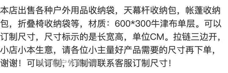 帐篷收纳袋 600d牛津布户外露营收纳袋长支架收纳包天幕杆手提帐 60*15*15CM